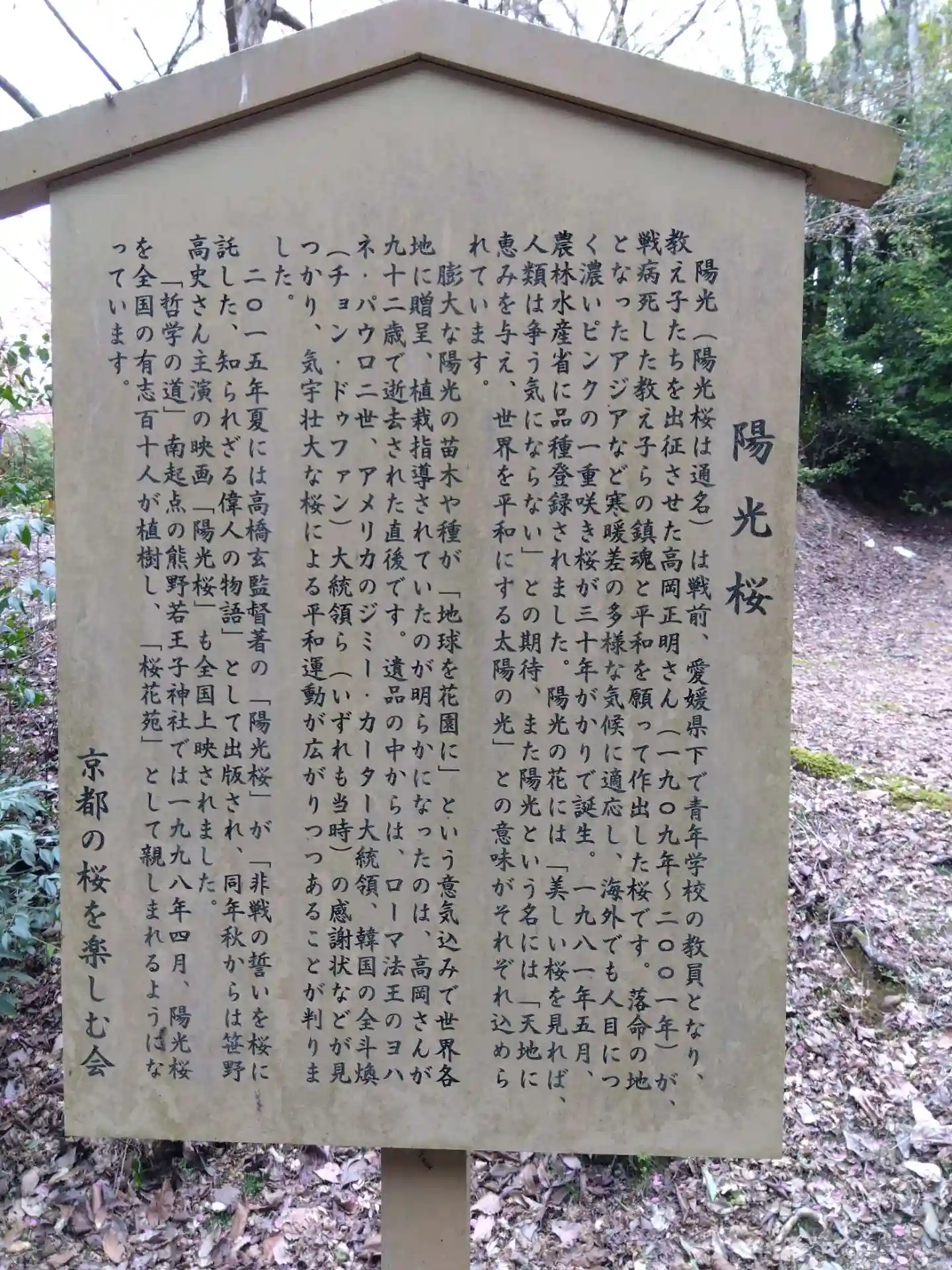 駒札。陽光桜由緒。