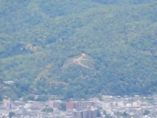 手前の円形が将軍塚。平安京を定めるときに、桓武天皇がここに甲冑を祀ったそうです。知らなかった、行きそびれた。