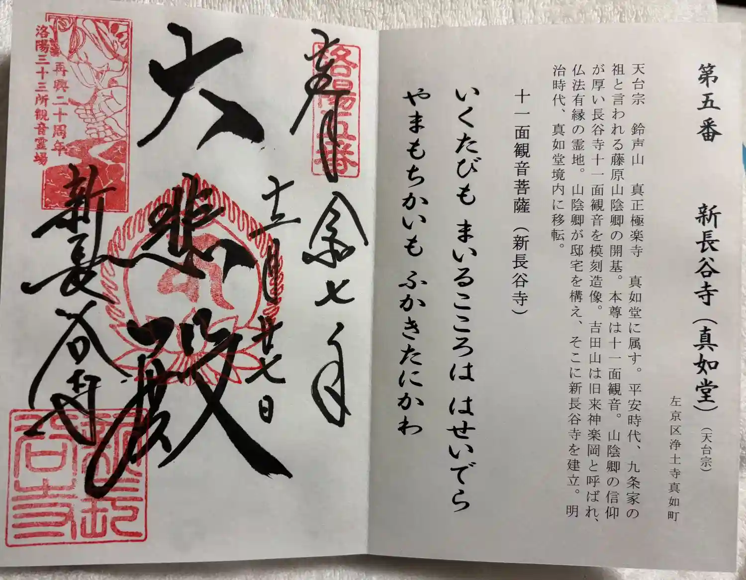 洛陽三十三所観音霊場第五番。御朱印は真如堂にて。