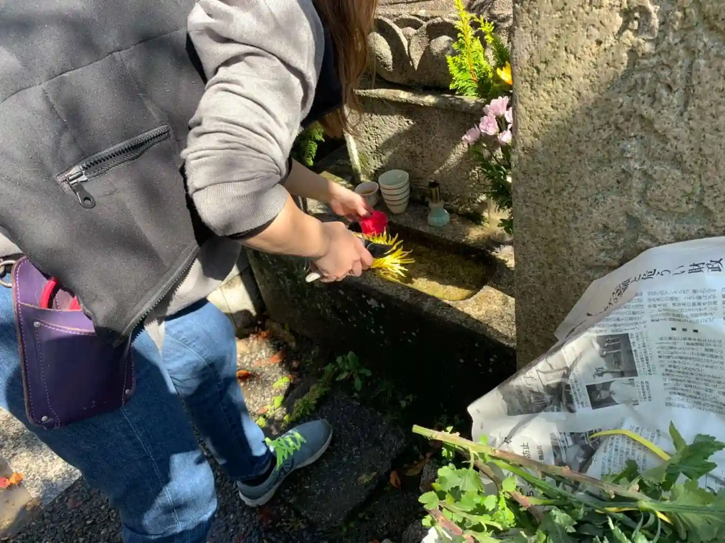 五劫思惟さまの水受けが汚れていたので掃除をしていたら門前の花忠さんが