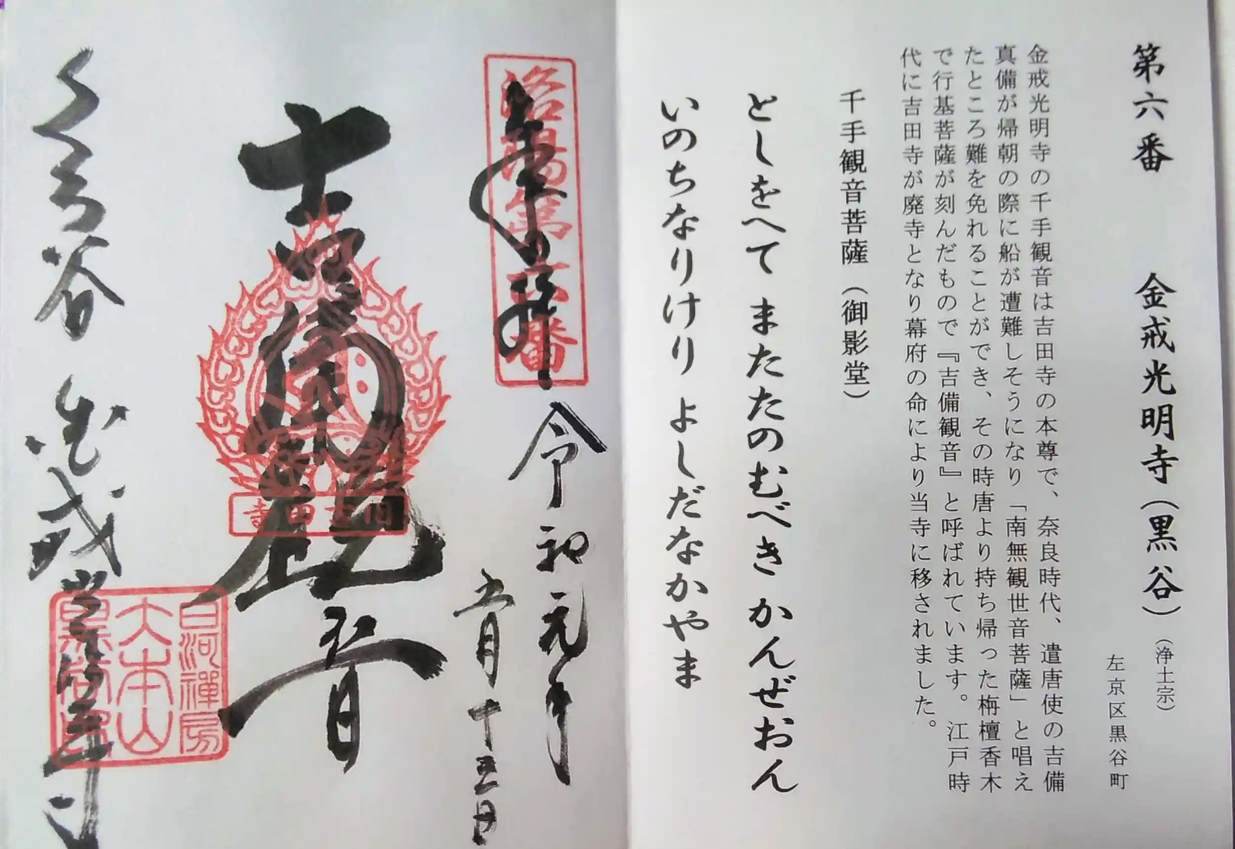 と、京都洛陽三十三所観音霊場巡礼より「吉備観音」朱印。