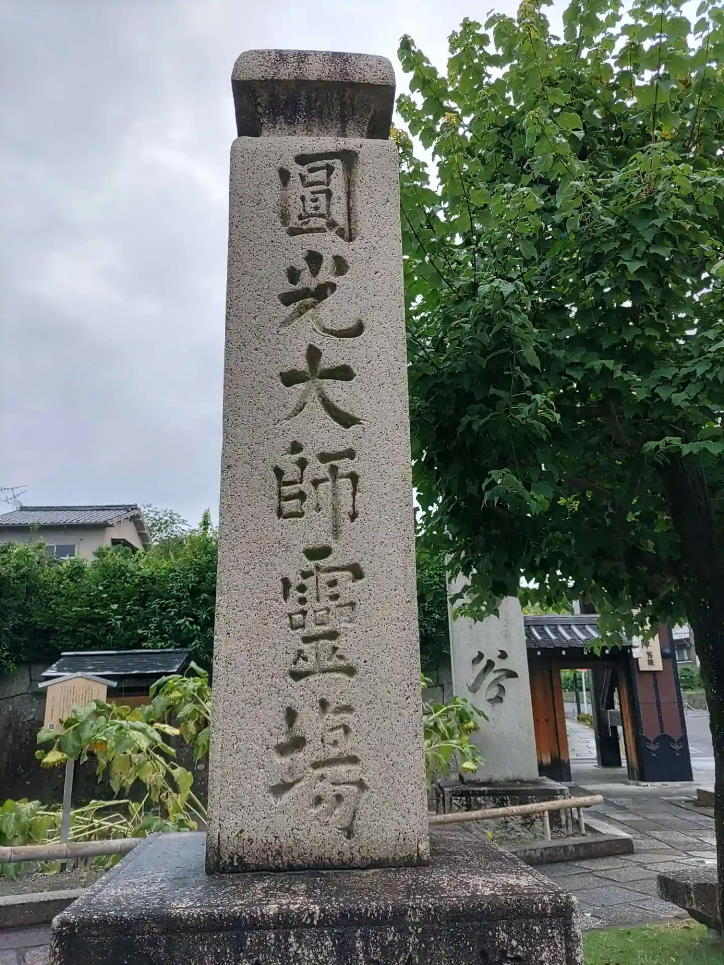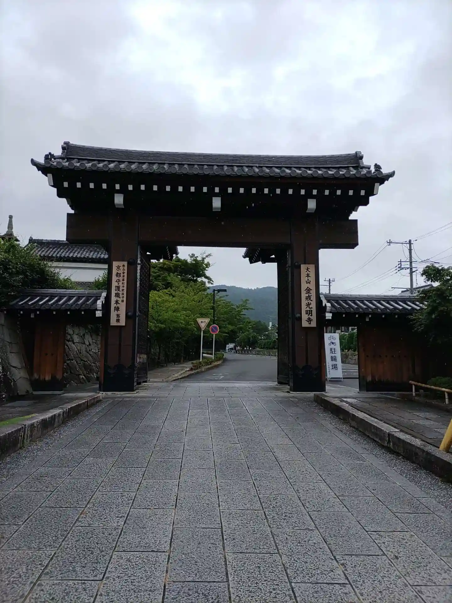 くろ谷さん。1862年徳川幕府が京都守護職の本陣を置いた。會津藩松平肥後守京都守護職本陣旧跡。妻の祖父母の墓参りに行ったこの日、いわゆる局地的豪雨に見舞われ、滝状になった石段を上がり、池となった道を歩き何とか墓地にたどり着いたものの、墓の場所がわからず、いったん本堂におりました。本堂で御朱印をいただき、墓地の場所を尋ねてから出直し。墓参を終えたころには小ぶりとなり平安神宮の鳥居など眺望を楽しむことができました。少し待ってから出直せばよかった。