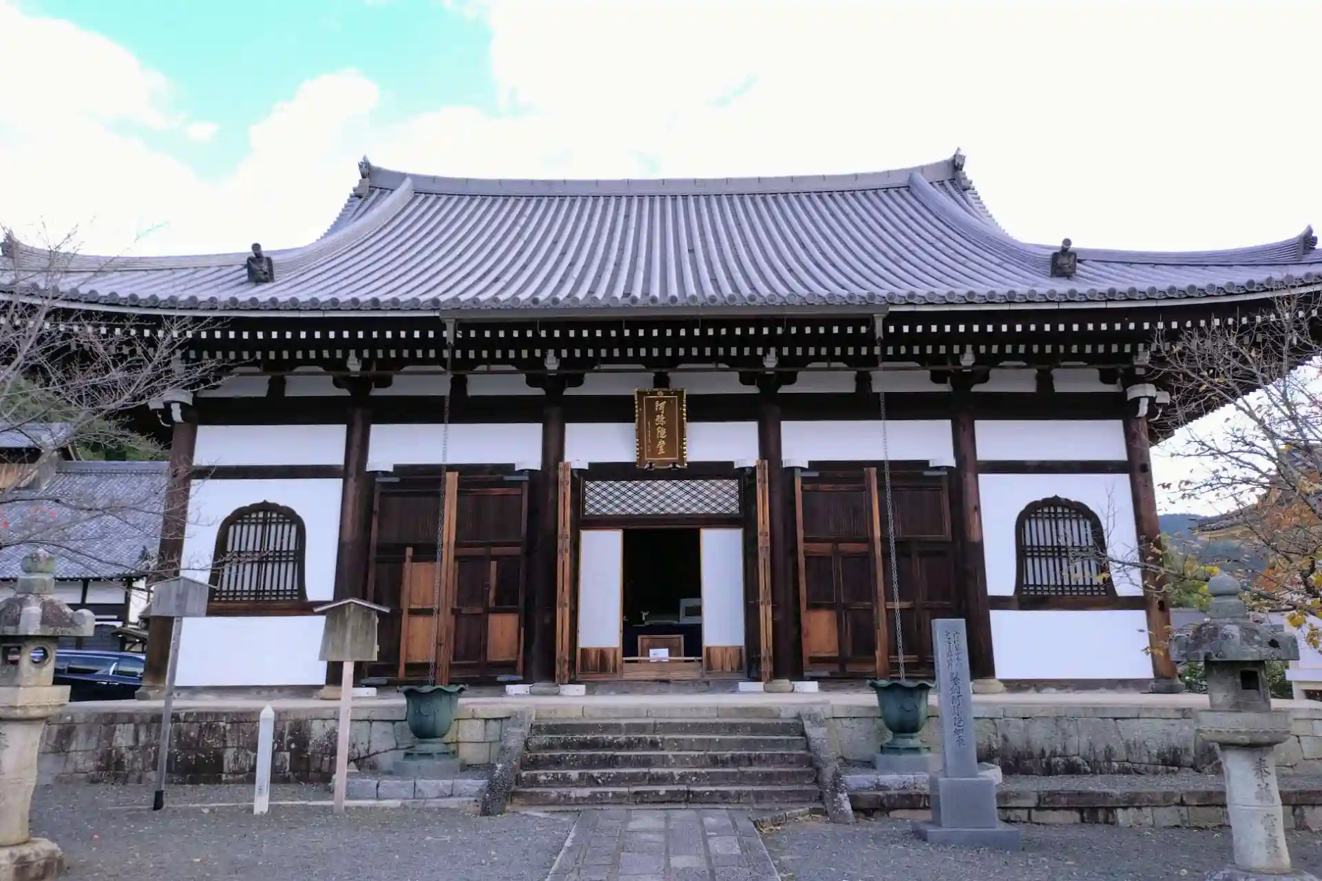 山門①後小松天皇宸翰「浄土真宗最初門」の勅額が掲げられ、法然上人の開かれた浄土教の教えがここから始まったことが示されています。