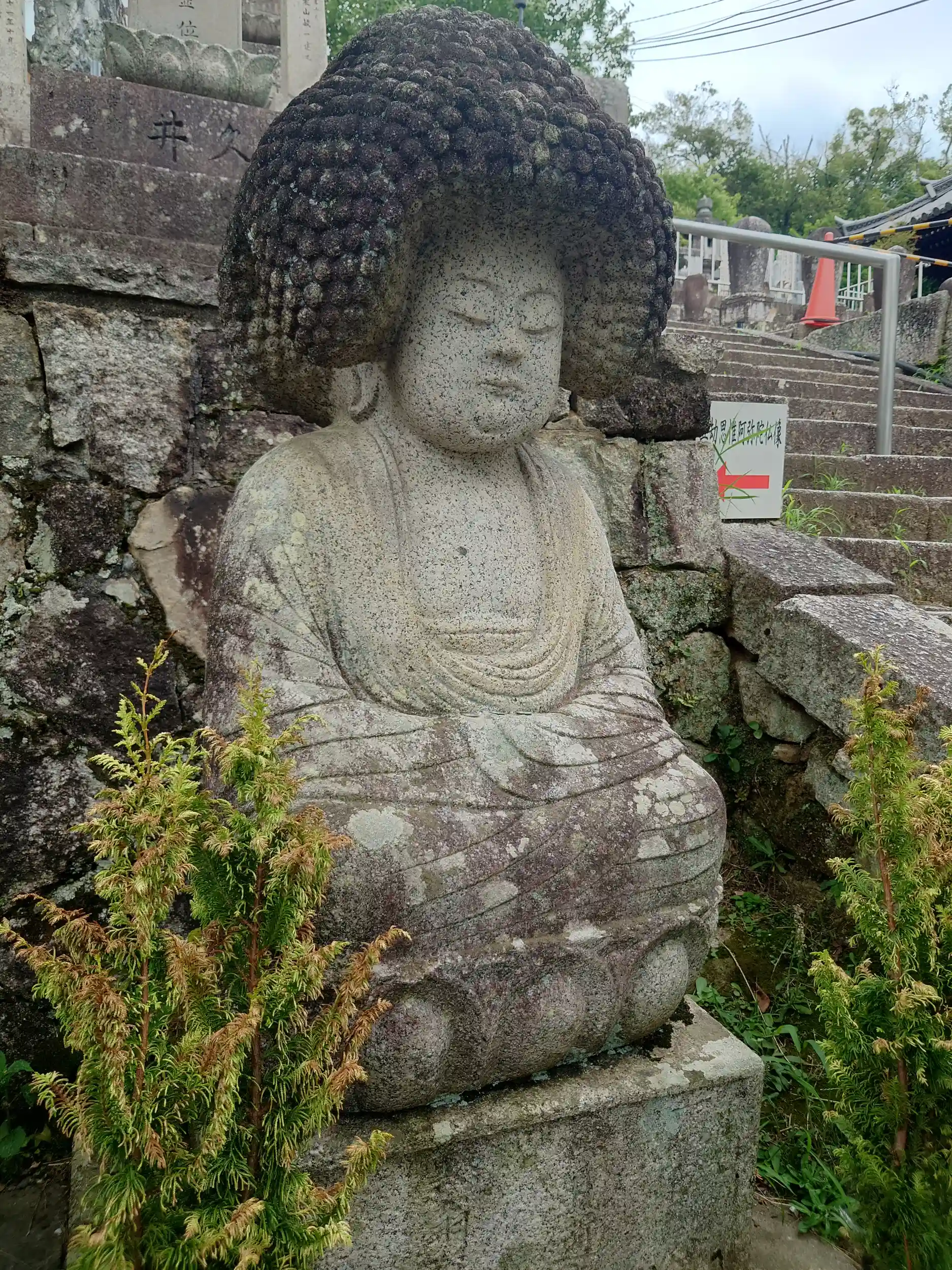 三重塔への階段の途中の墓地に、五劫思惟(ごこうしゆい)阿弥陀仏…通称アフロ仏像様がいらっしゃいました。