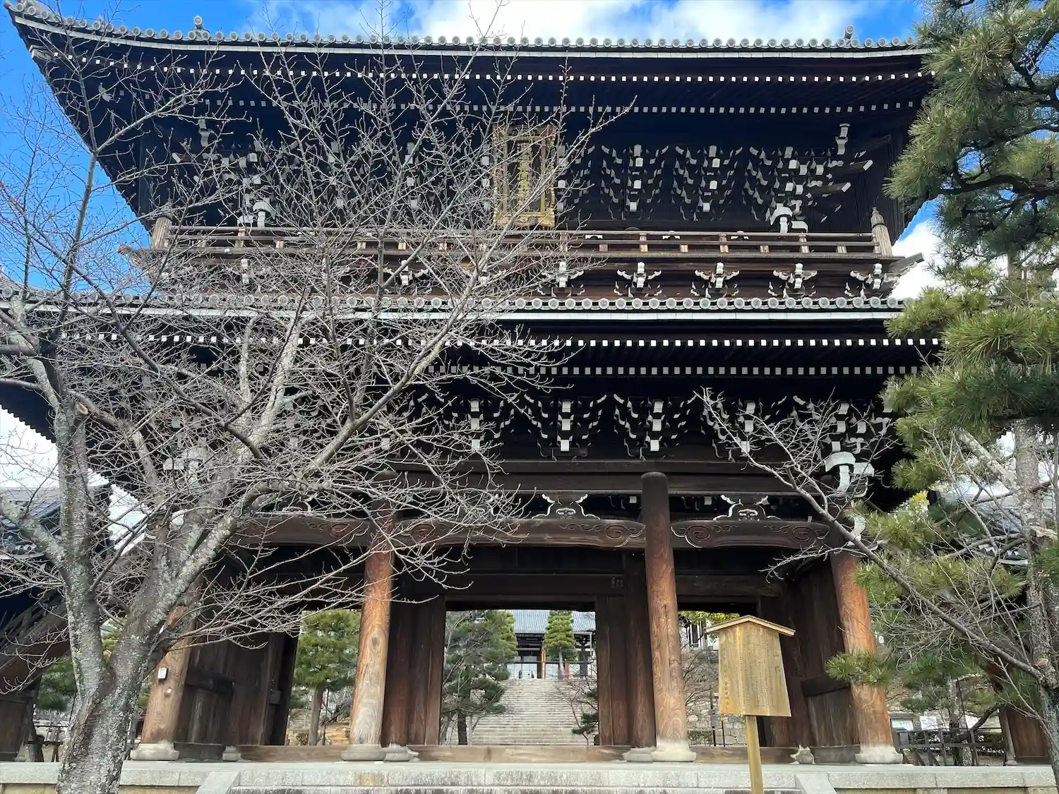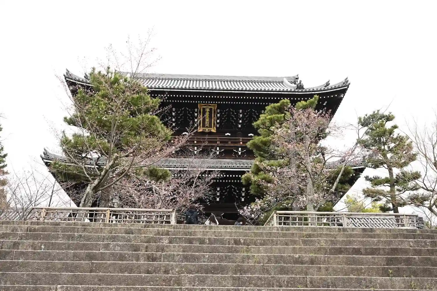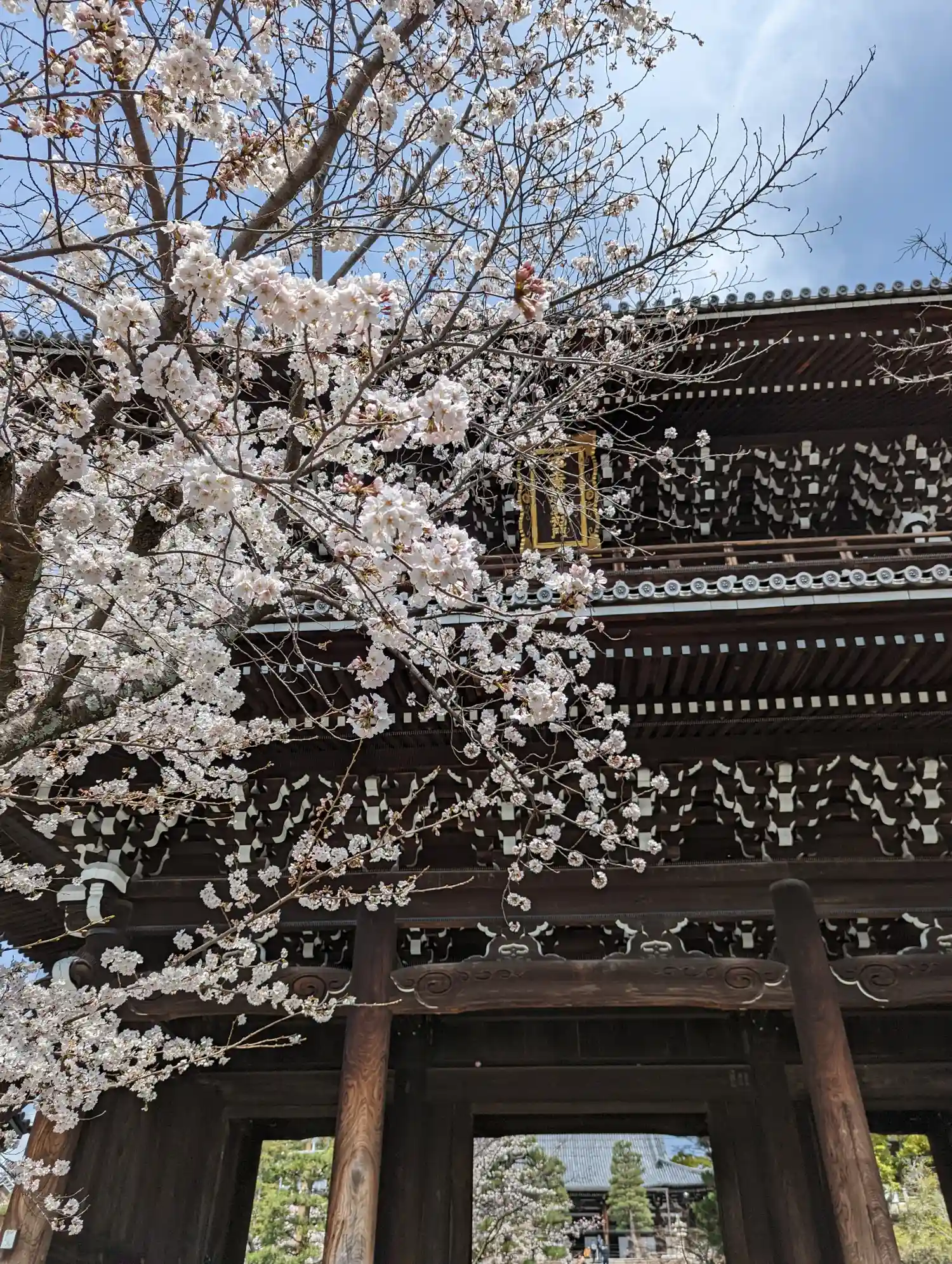 金戒光明寺へ。今年はホンマに桜が・・・いまだ開花宣言されていない京都。三門左手の枝垂れ桜が3分咲き…