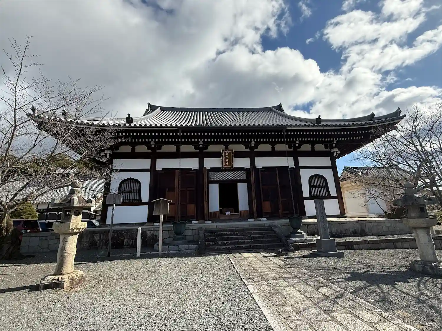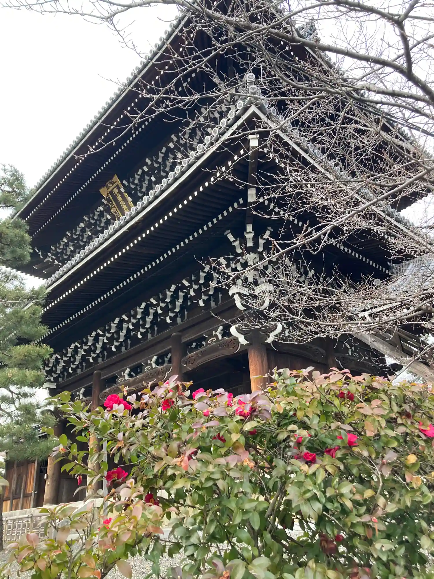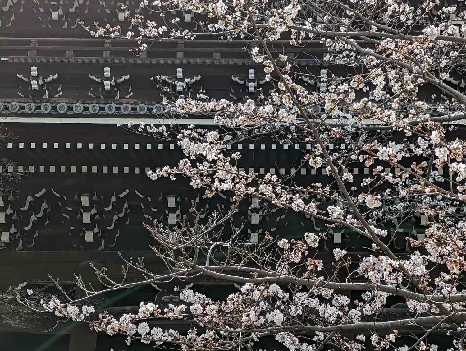 金戒光明寺へ。今年はホンマに桜が・・・いまだ開花宣言されていない京都。三門左手の枝垂れ桜が3分咲き…