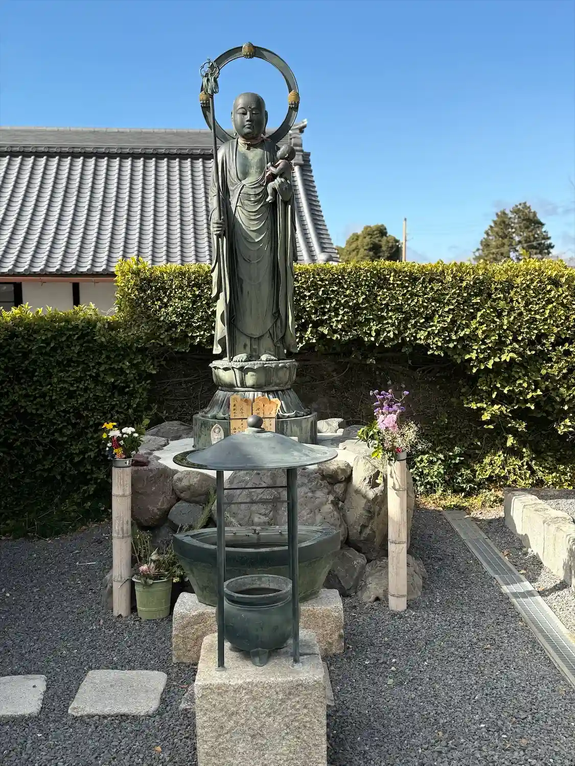 五劫思惟さまの水受けが汚れていたので掃除をしていたら門前の花忠さんが