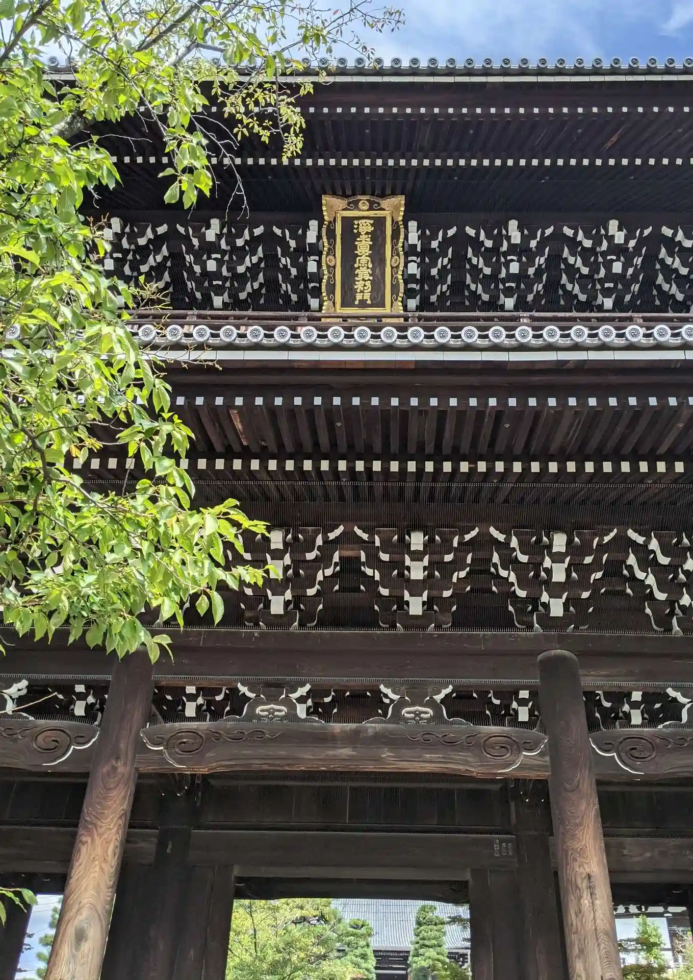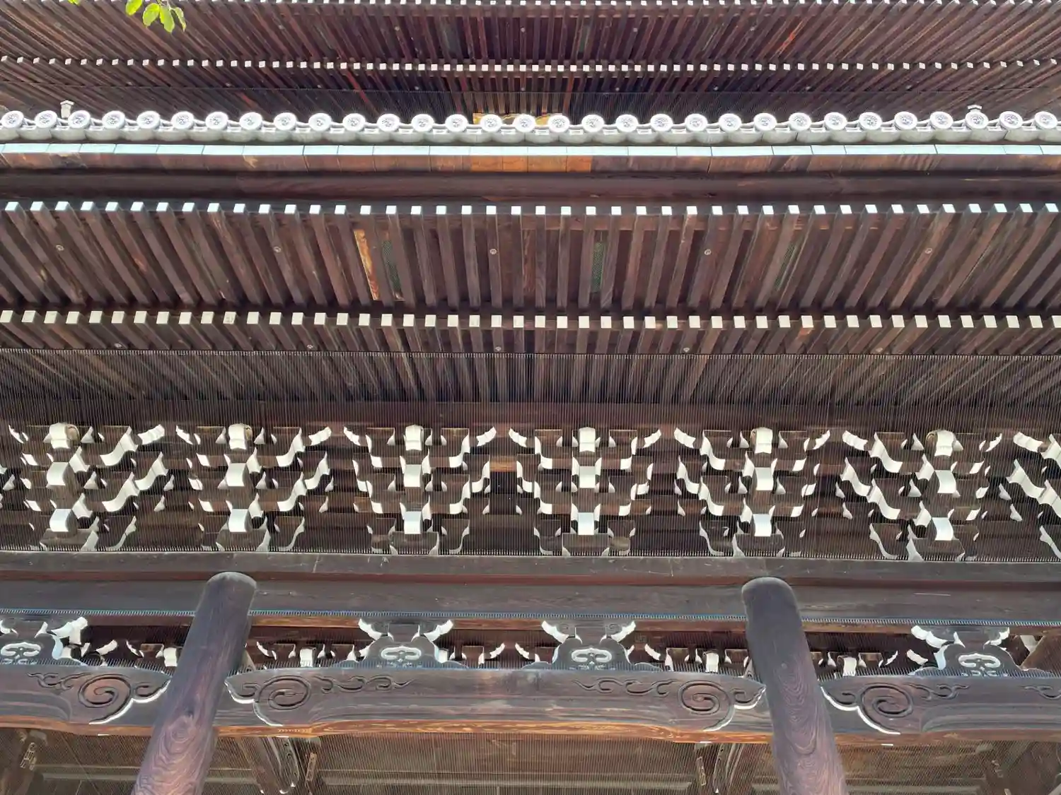 山門の壮大な屋根ささえ。