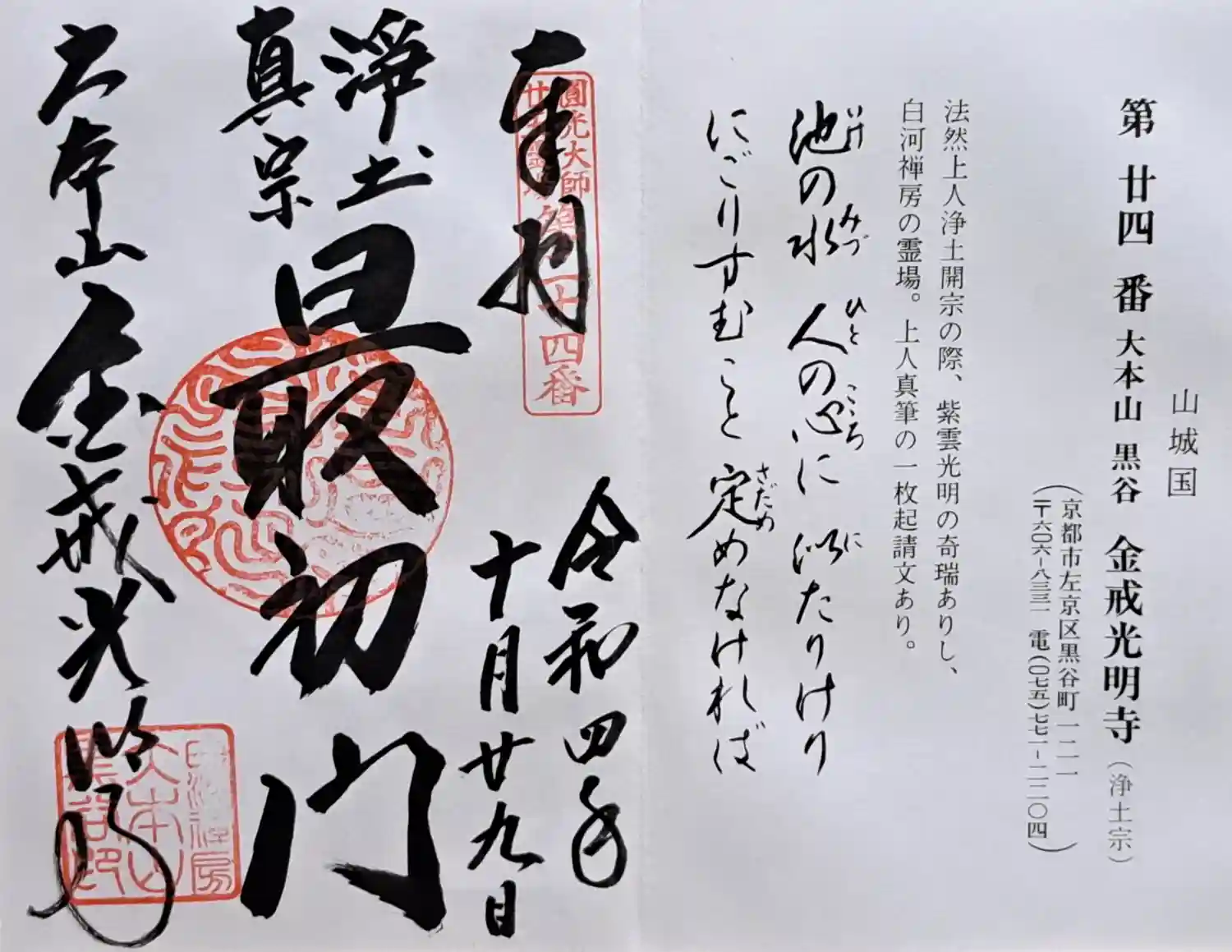金戒光明寺の御朱印を直書きでいただきました