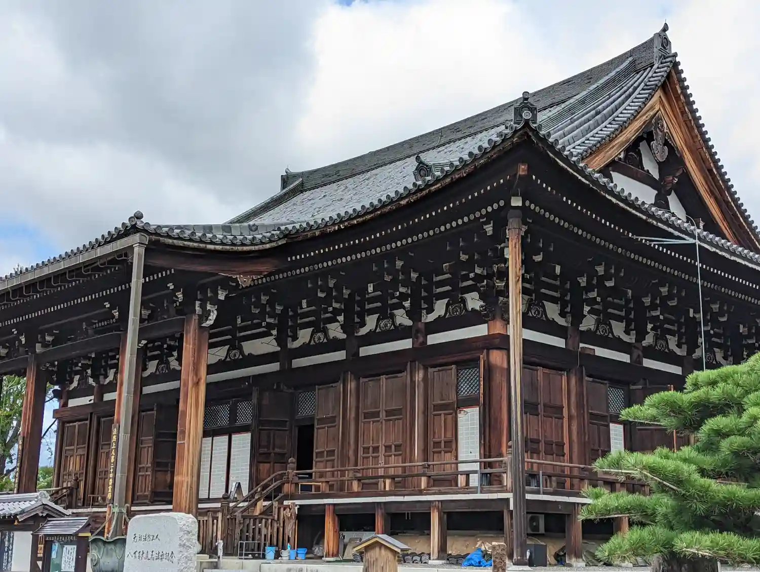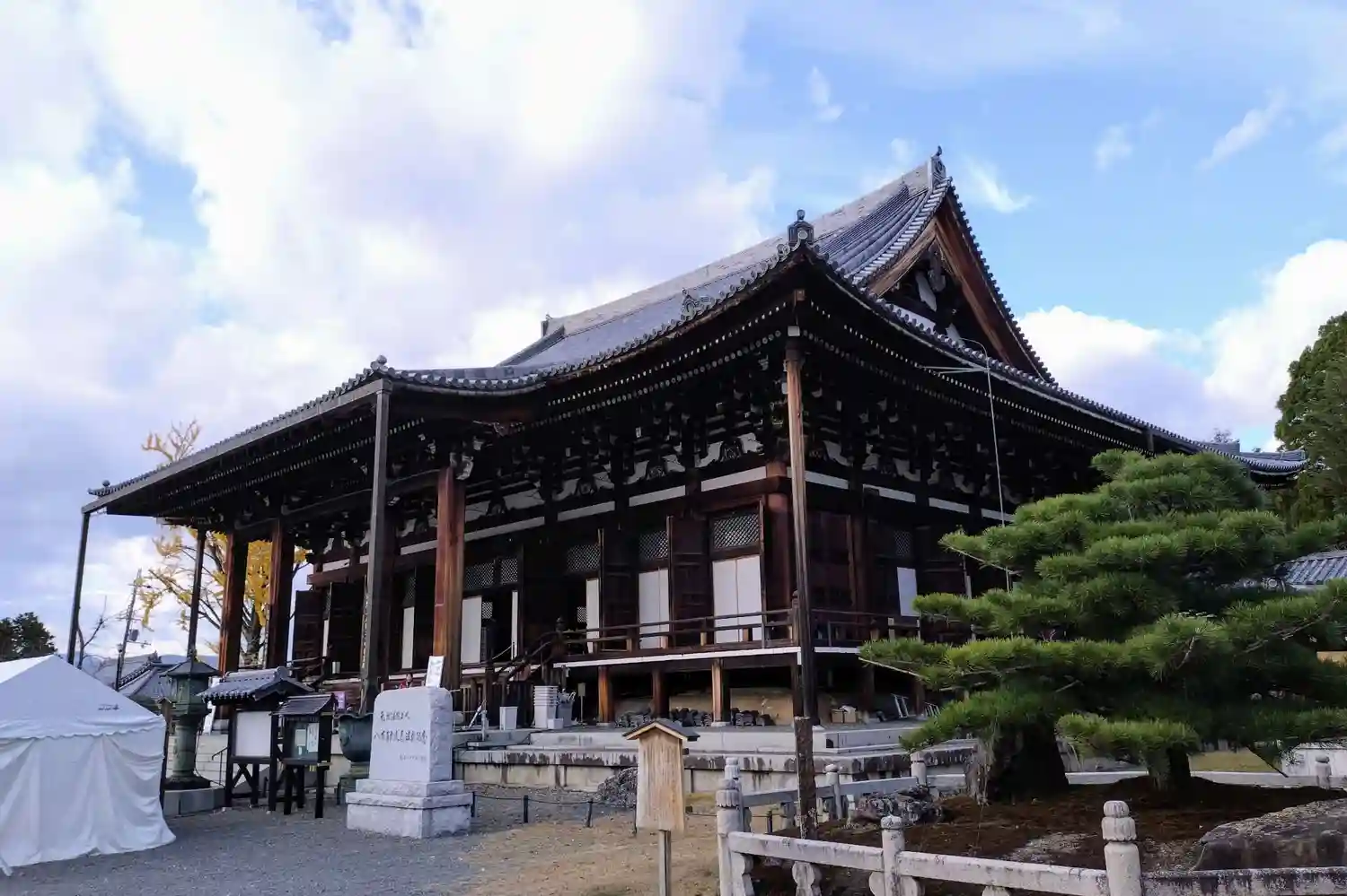 御影堂と鎧がけの松
