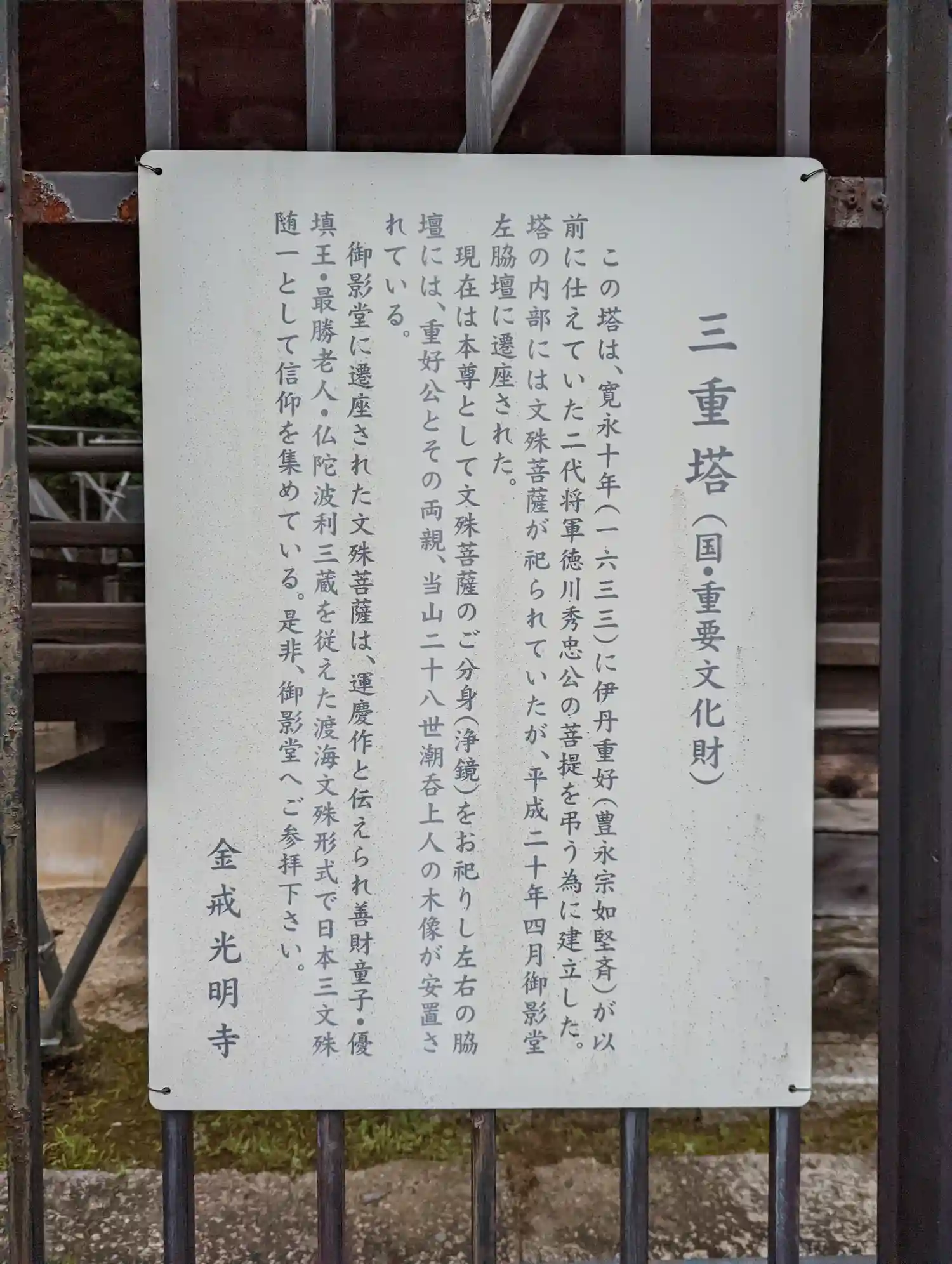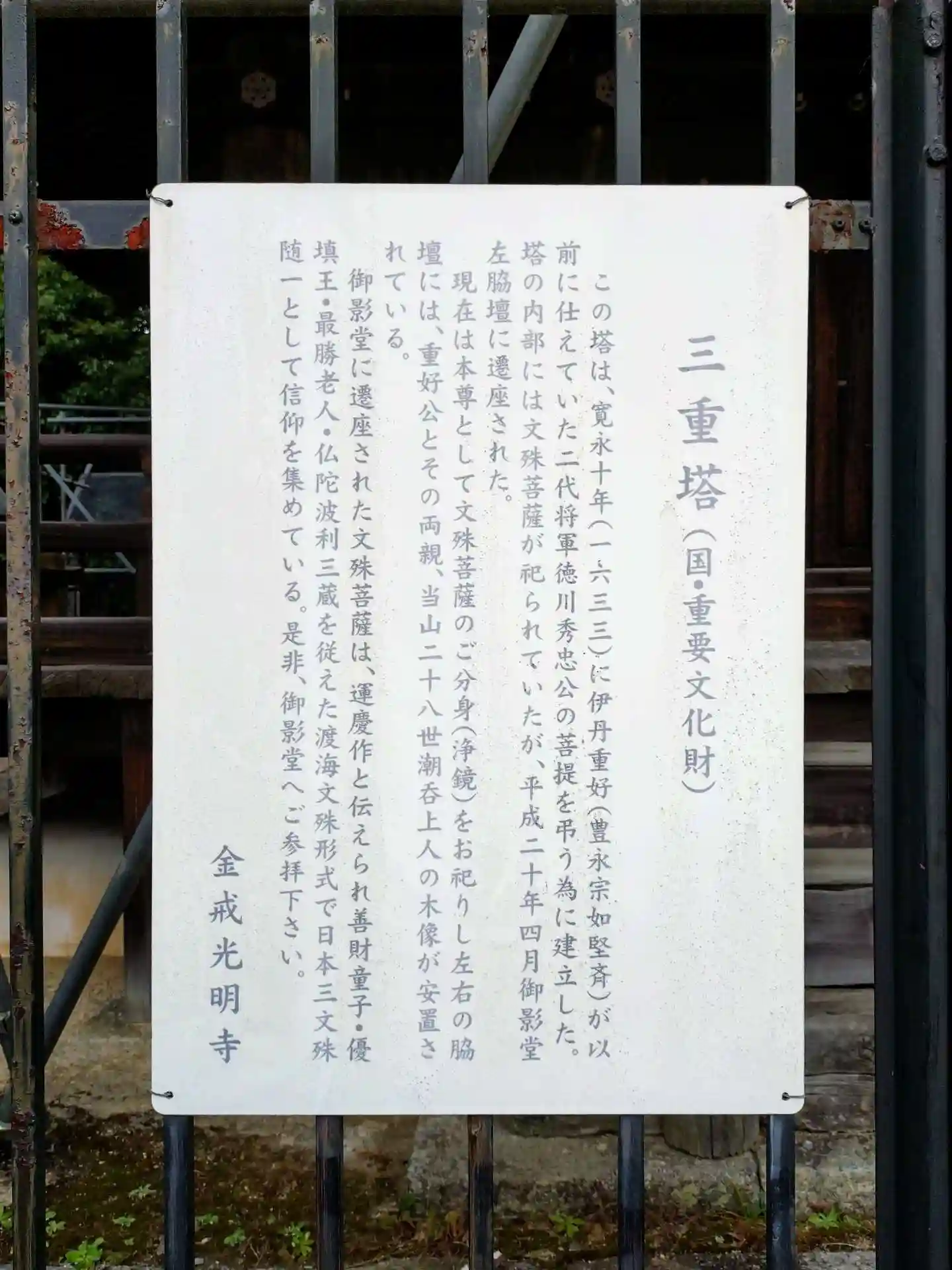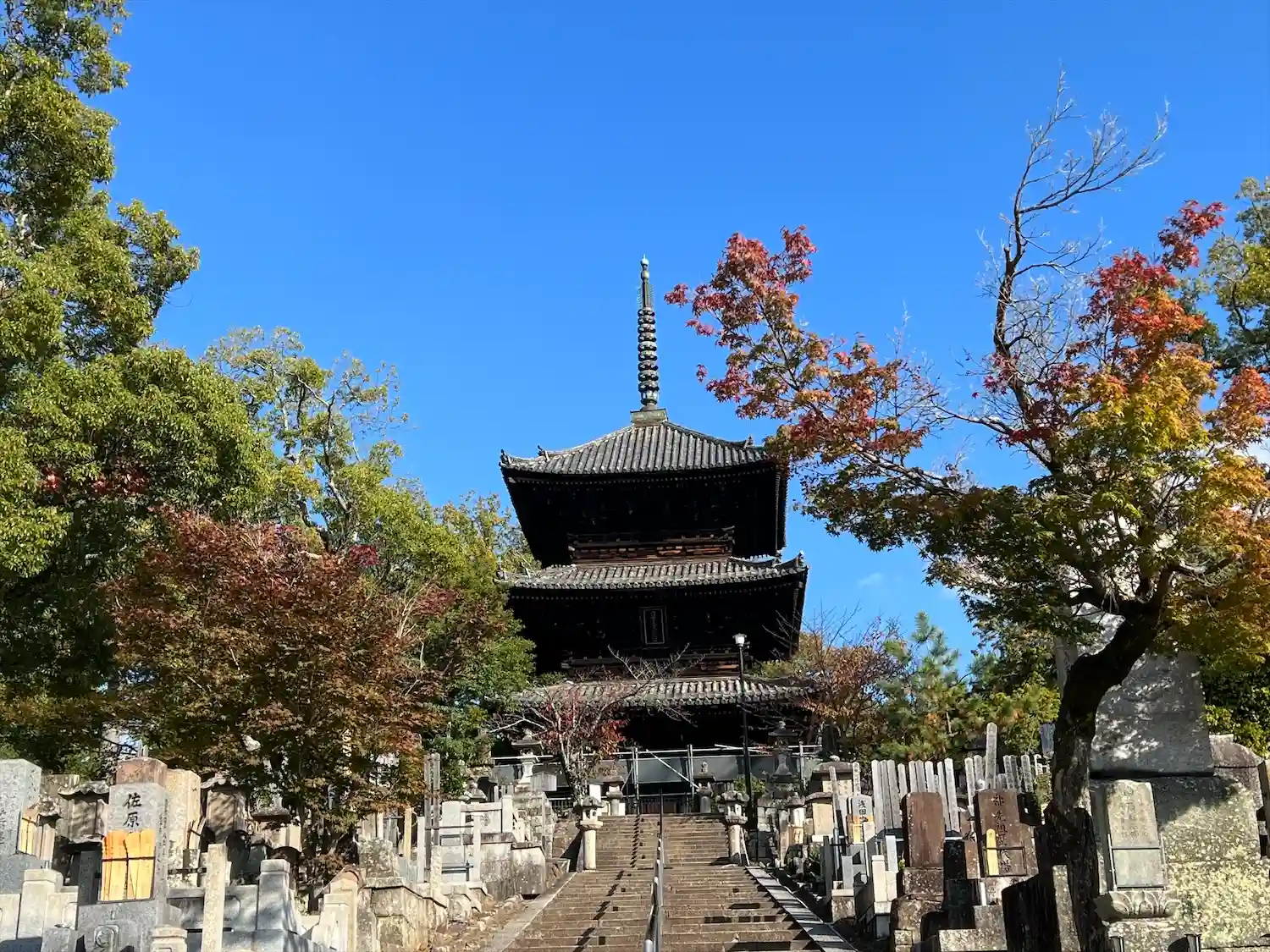 三重塔を遠望。