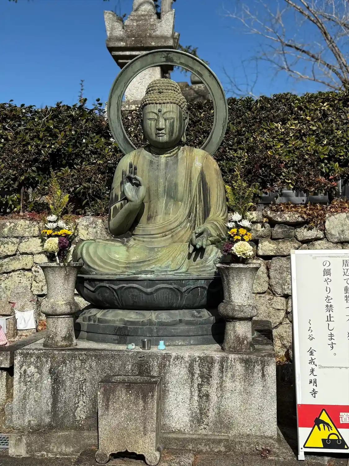 洛陽三十三所観音霊場第六番。洛陽四十八願所阿弥陀如来第二十五番。アヒルの花手水とアフロ石仏が人気の…