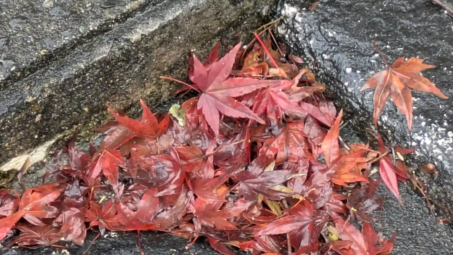 落ち葉も真っ赤