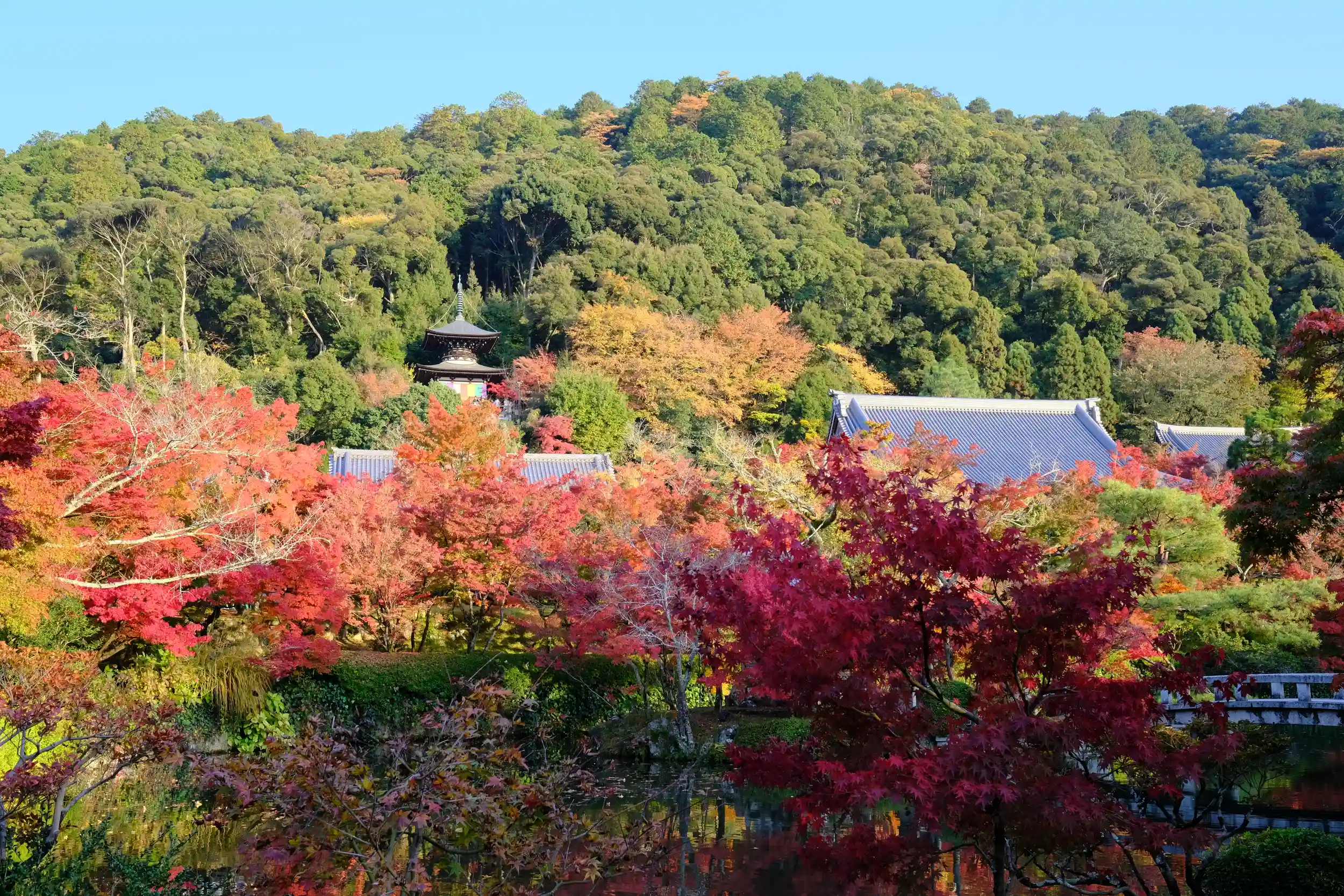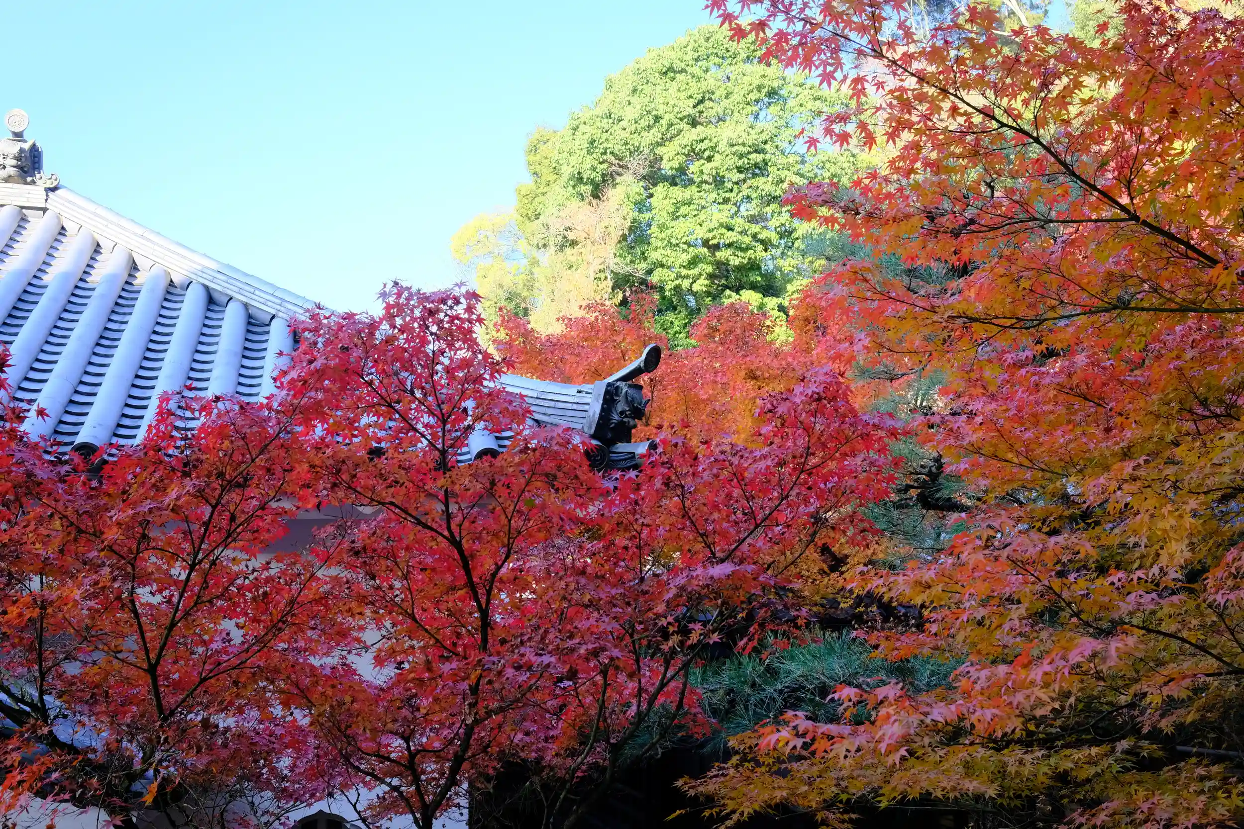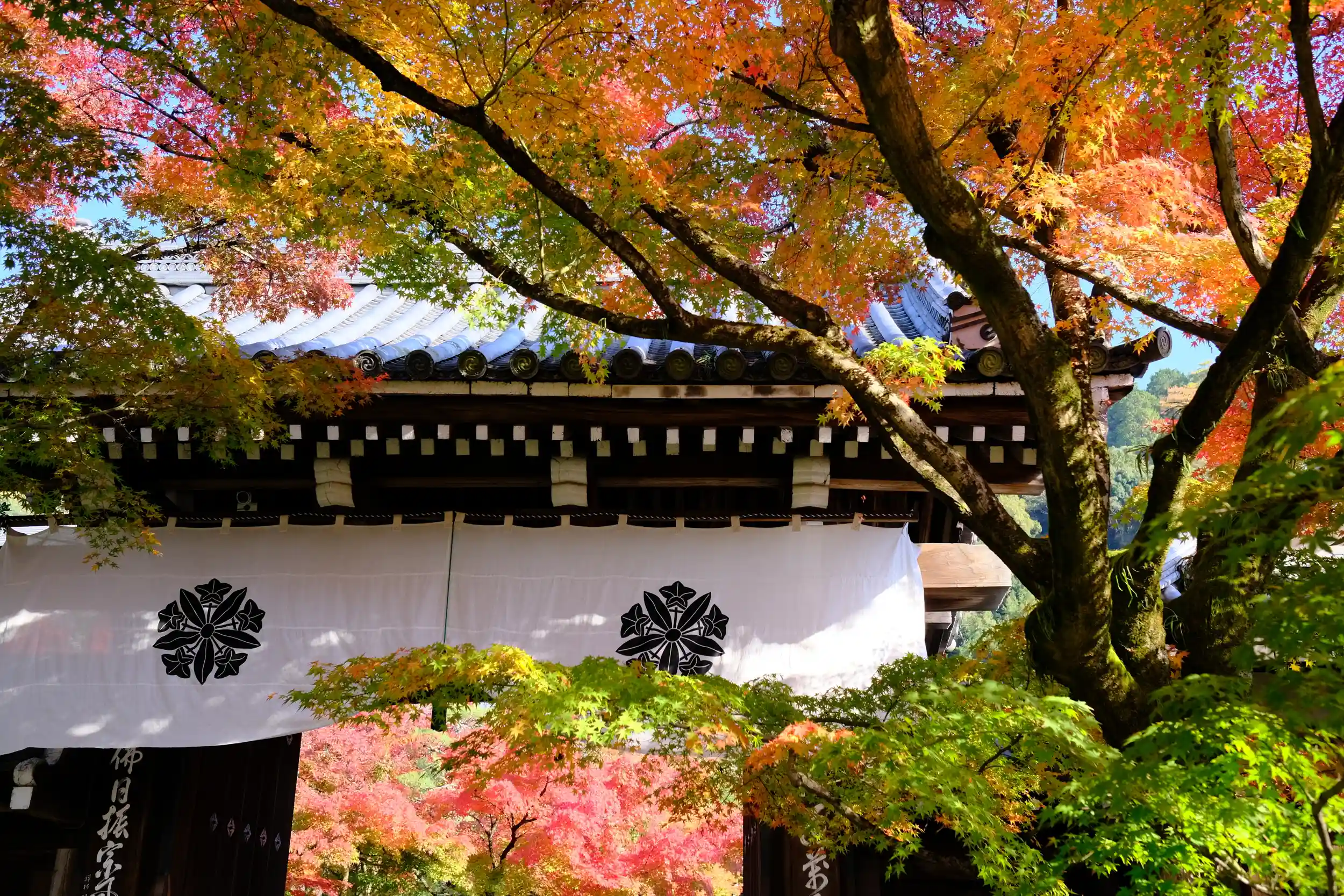 寺院の境内はまるで紅葉をまとったかのようで多くの人が訪れ、賑わいを見せていました。
