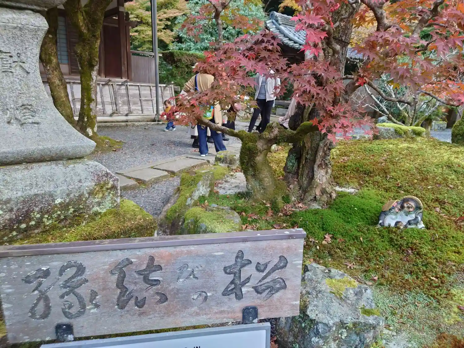 「縁結びの松」の下のたぬき。