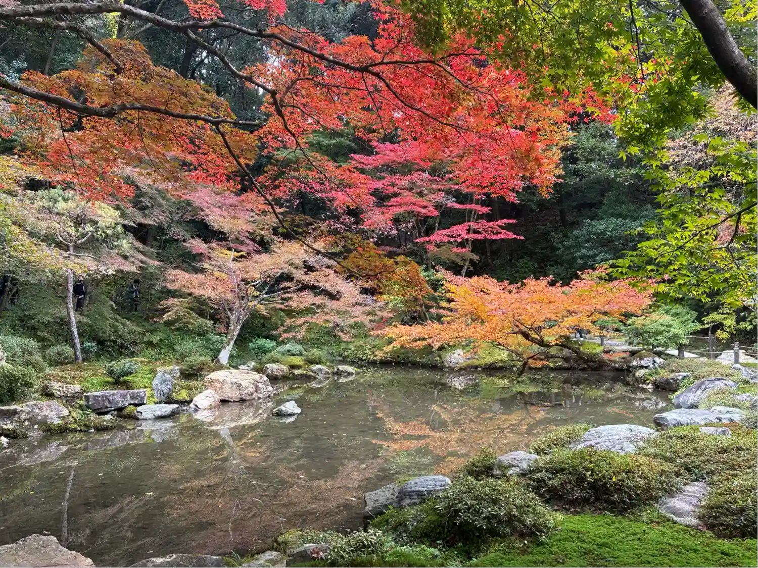 南禅寺から水路閣をくぐり、南禅院を拝観。小雨に濡れた池の周りの紅葉🍁が一段としっとり美しい。