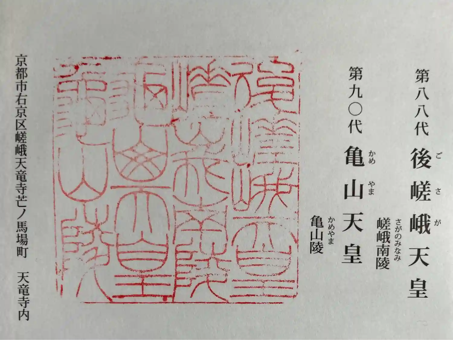 第九十代 亀山天皇 亀山御陵印