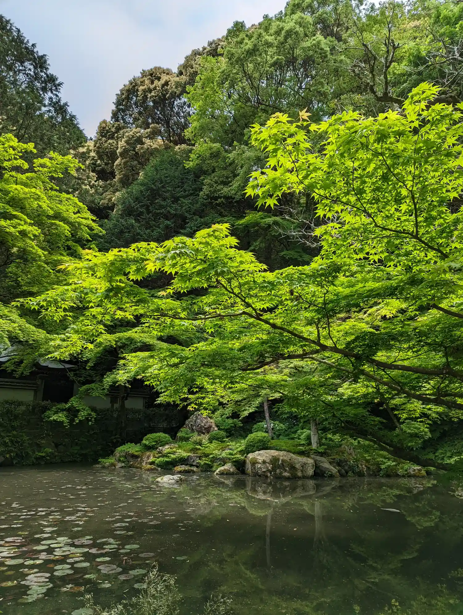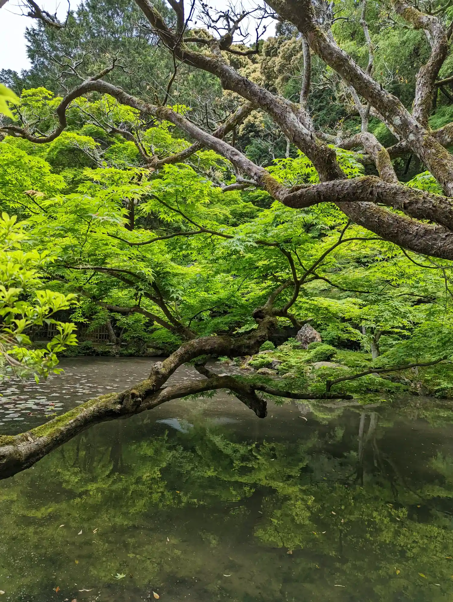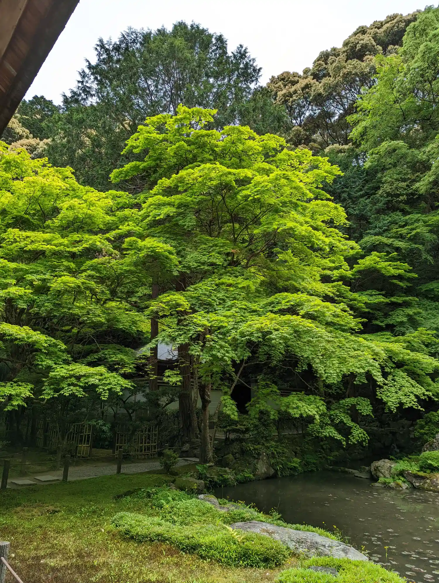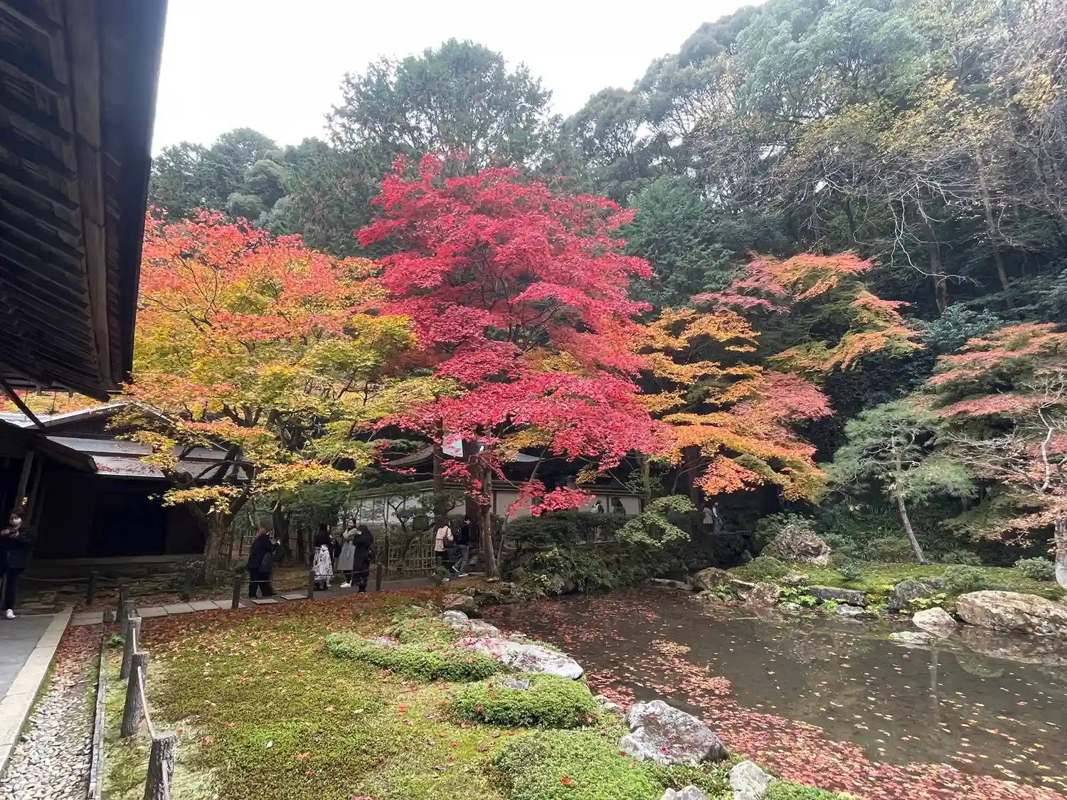 南禅寺から水路閣をくぐり、南禅院を拝観。小雨に濡れた池の周りの紅葉🍁が一段としっとり美しい。