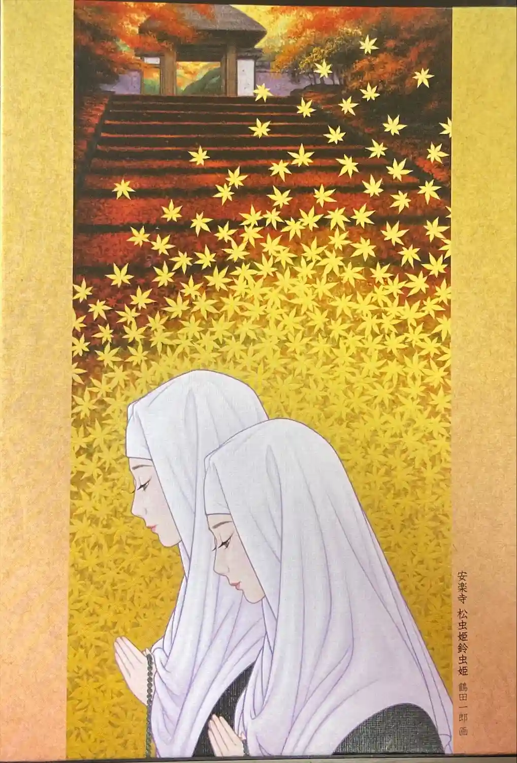 安楽寺に伝わる松虫姫、鈴虫姫が描かれた御朱印帳になります。俗世から離れたお二人がとても美しいです。