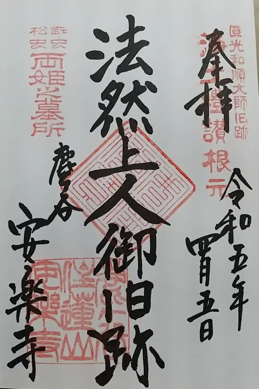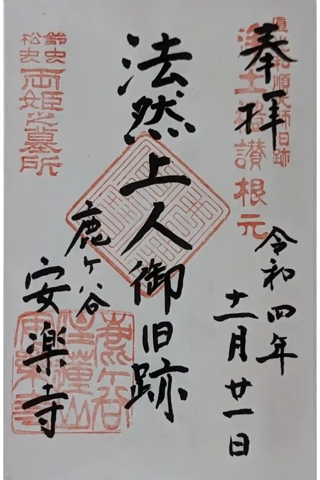 印-円光和順大師旧跡浄土礼讃根元 鈴虫松虫両姫之墓所 仏法僧宝 鹿ヶ谷住蓮山安楽寺