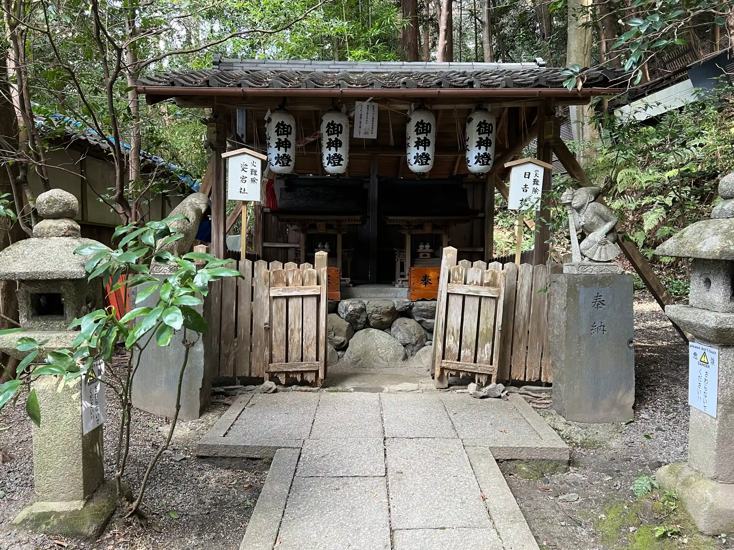狛ねずみは、本殿の右手にある末社の大国社にいます。祭神は出雲大社と同じ大国主命(オオクニヌシノミコト)で、縁結びの神様です