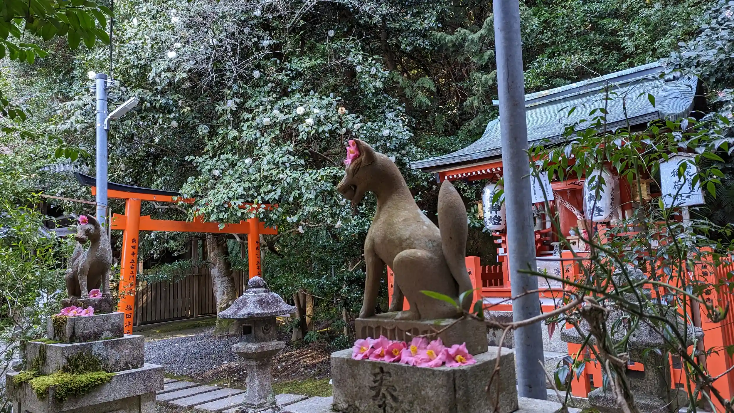 花の名所と言っても過言ではない神社。蝋梅、しだれ梅、椿、枝垂れ桜が一度に楽しめました😍外国人観光客が多くてビックリ😳