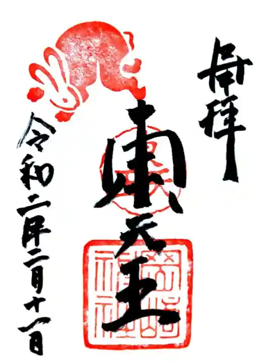 真ん中に東天王と書かれ、左上にウサギの印、真ん中に東天王の印、下部に岡崎神社の印が押されています。
