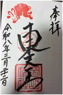 真ん中に東天王と書かれ、左上にウサギの印、真ん中に東天王の印、下部に岡崎神社の印が押されています。