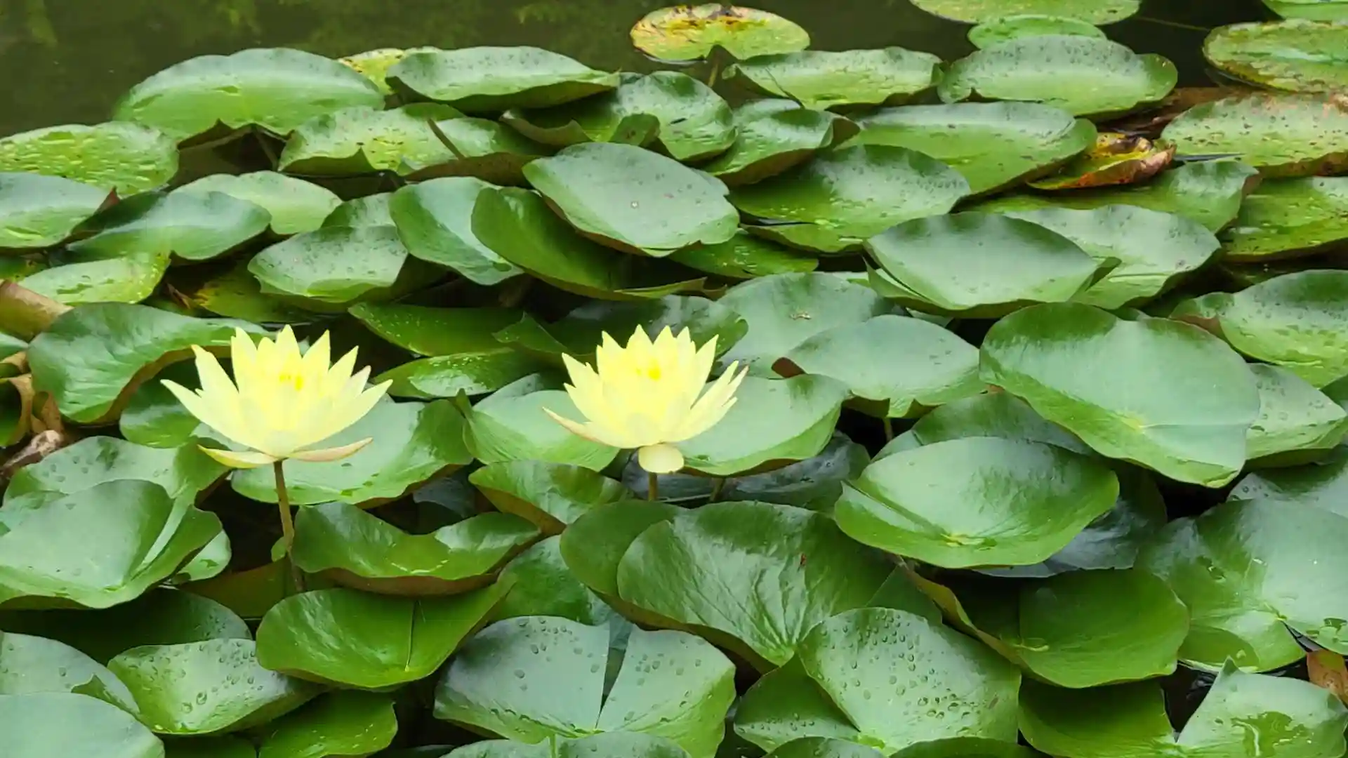 雨が振ったりやんだりでしたので、緑は美しく、暑さを忘れさせてくれました。白、黄色、ピンクの睡蓮がきれいでした。