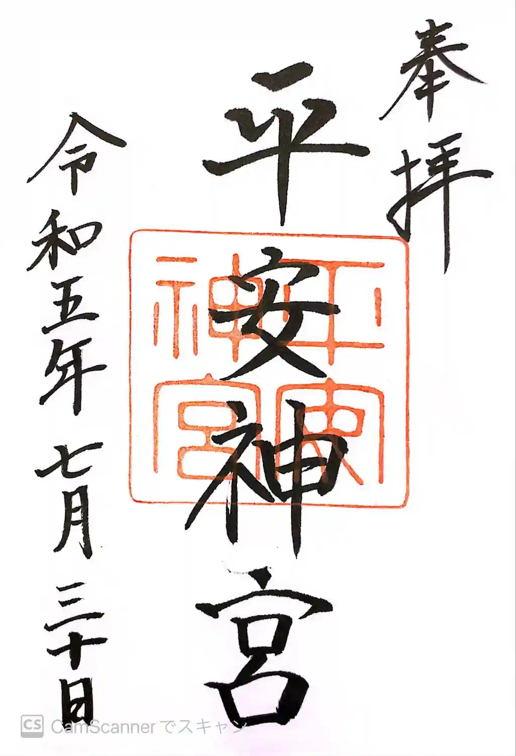 平安神宮でいただいた御朱印です。