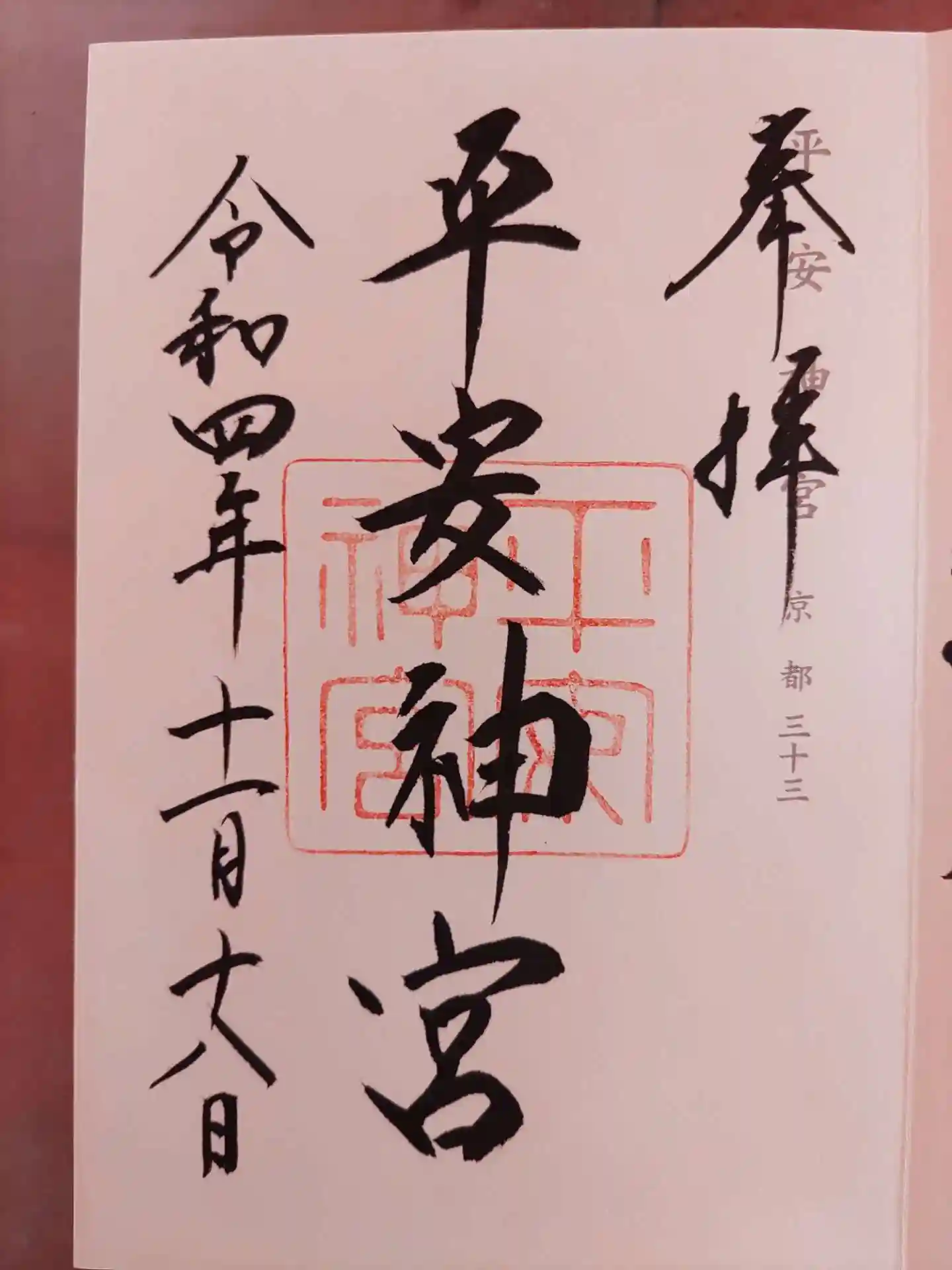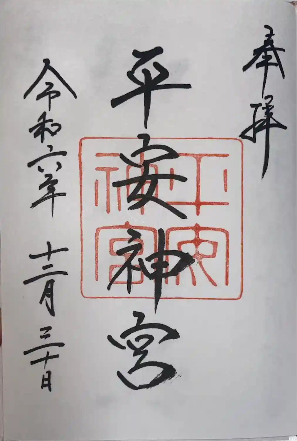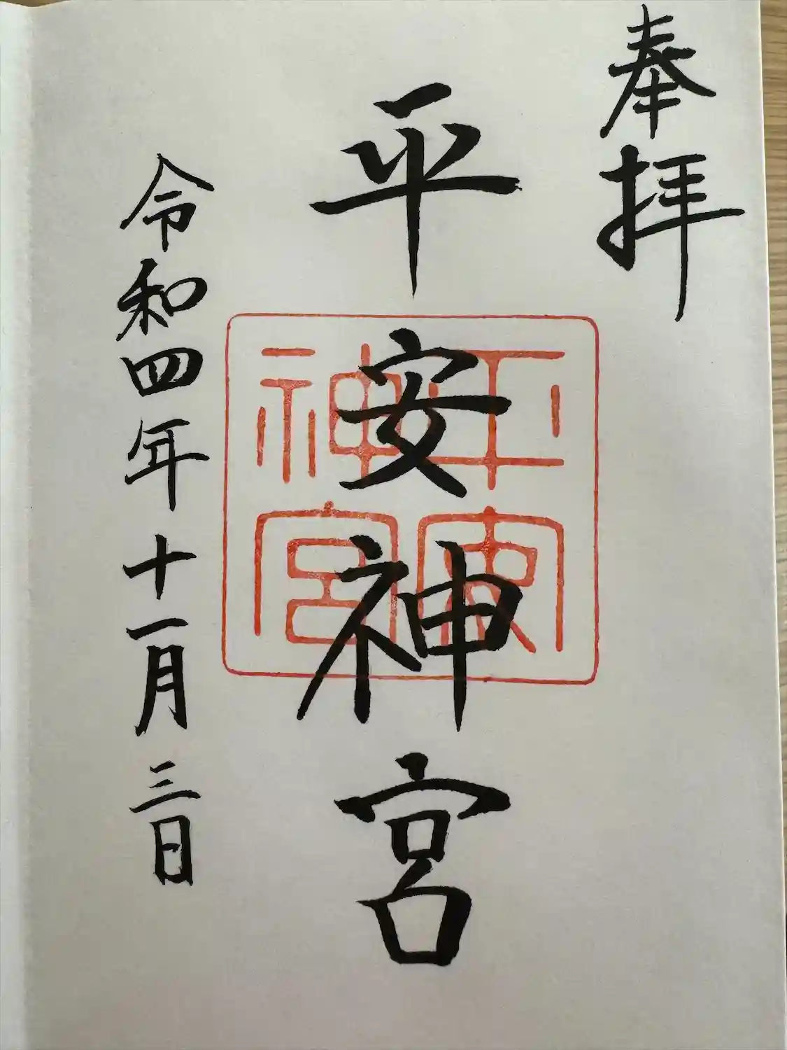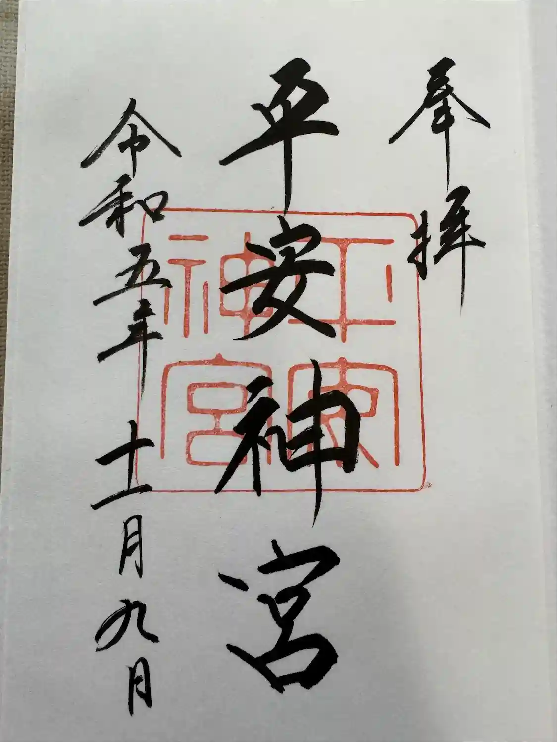 平安神宮にて御朱印頂きました。