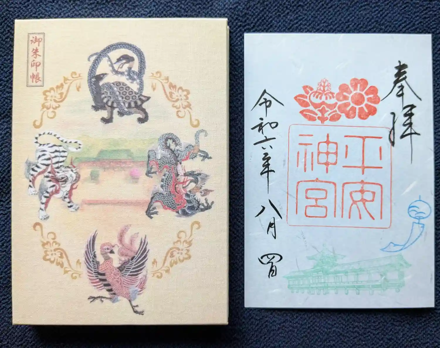 京都の神社の御朱印帳がなくなったので購入。京を護る四神です。