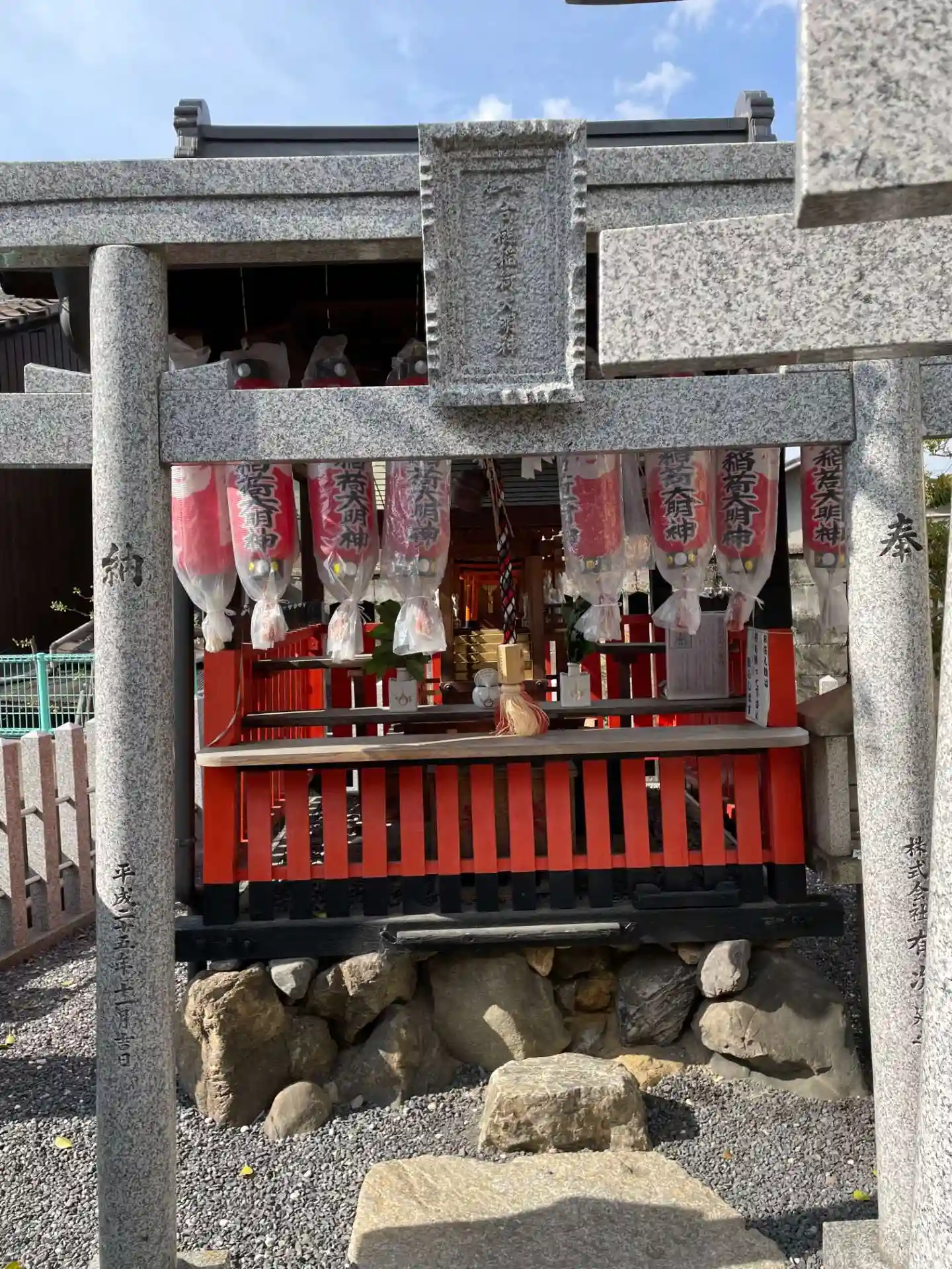 もともとは誰かの豪邸の中にあった神社なのか、どこかから移築されたものなのかわかりませんが、こんな隙間のような所に大事に祀られているんだなぁと思いました。