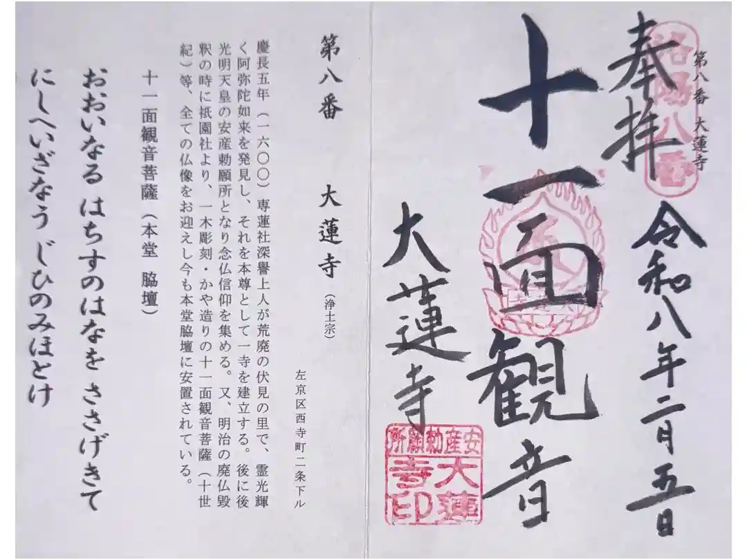 本堂には洛陽三十三所観音霊場第8番札所本尊の十一面観音も祀られています。