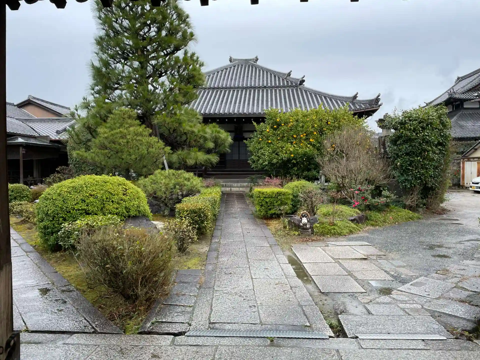 正面に本堂があり こちらも正念寺さんと同じような印象的な屋根です。