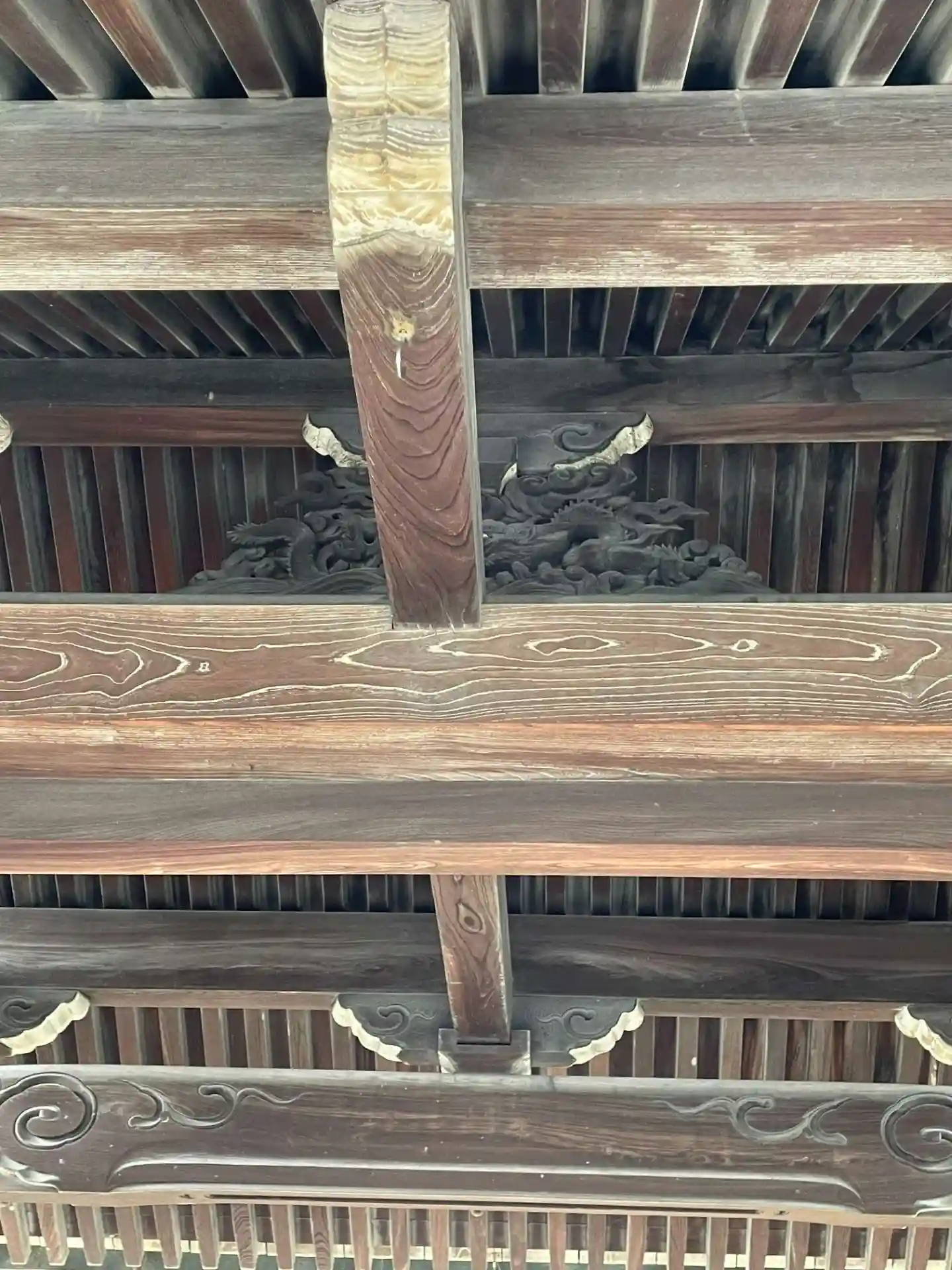 ふと見上げると 山門の梁の部分に龍の彫刻が施されていました。