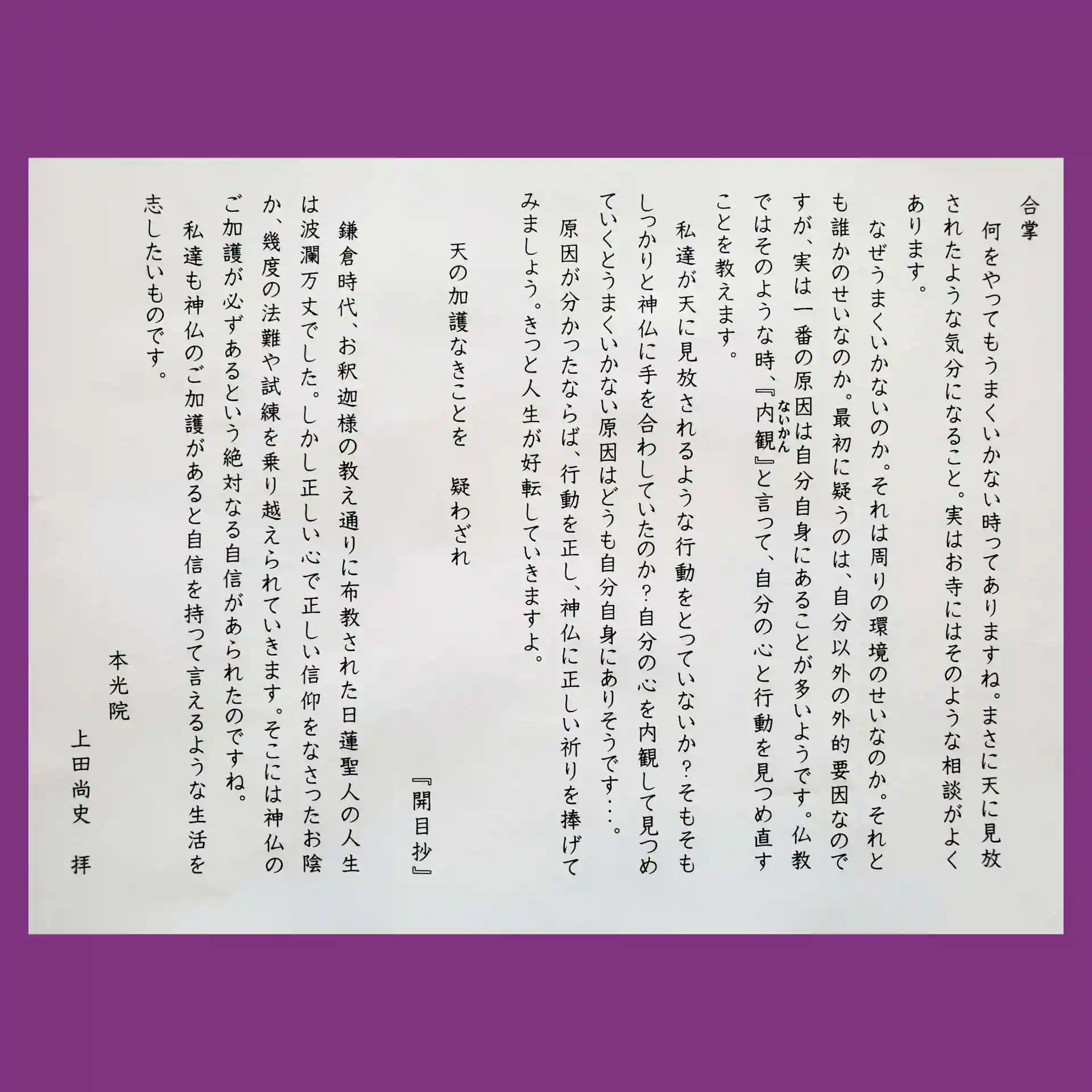 日蓮聖人の『開目抄』のお言葉との事です。