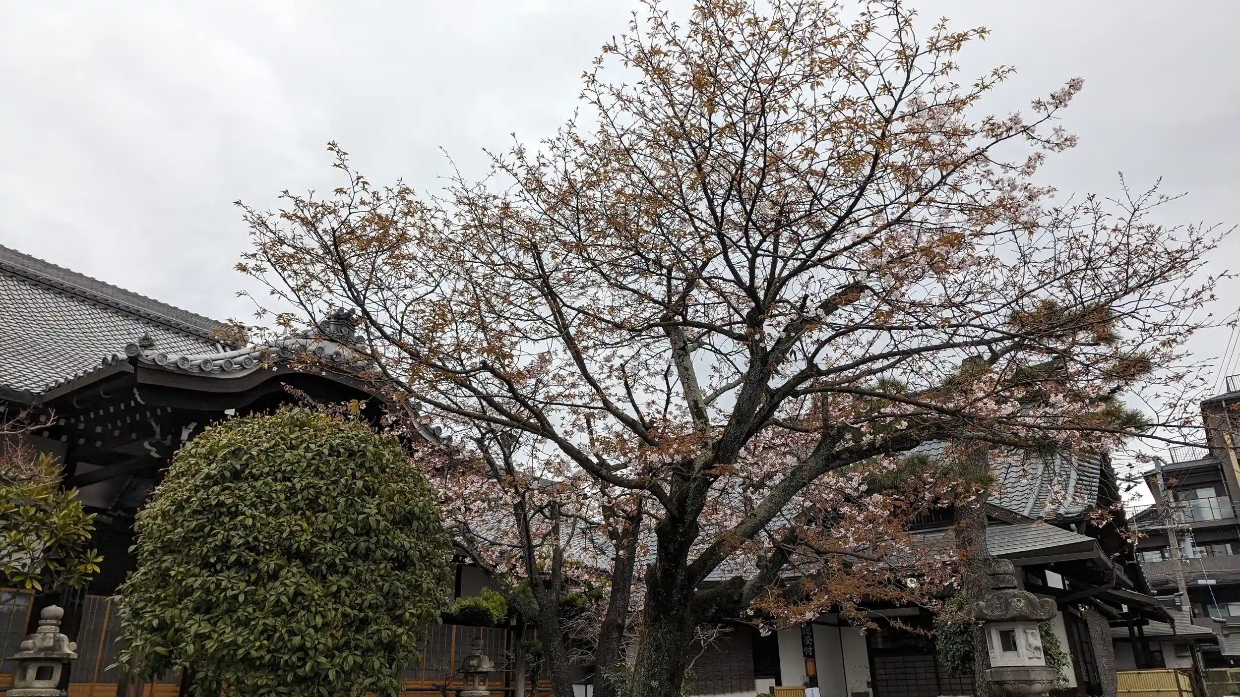 久しぶりの妙傳寺。近くは通るけどなかなかお参りには結びつかない・・・😅お参りして庫裏へ向かうと桜がいい感じに咲いてました😍ただ「御朱印休止中」の張り紙が・・・😭