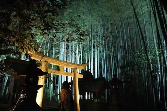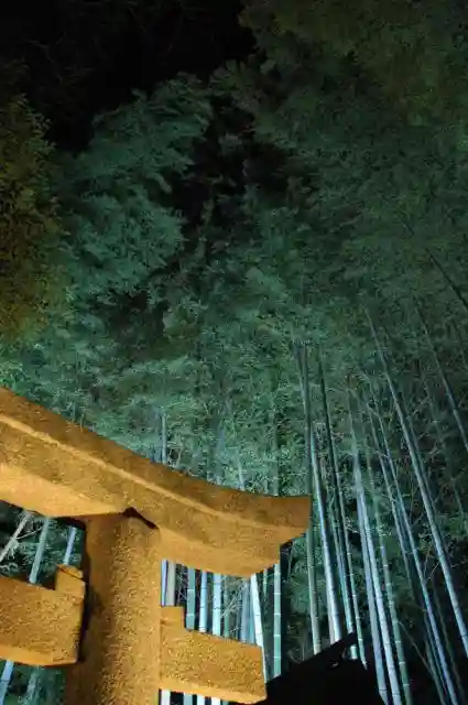 夜のお寺さんをライトアップすると怪しさ満点です。竹藪から妖怪でも出て来そうな雰囲気。