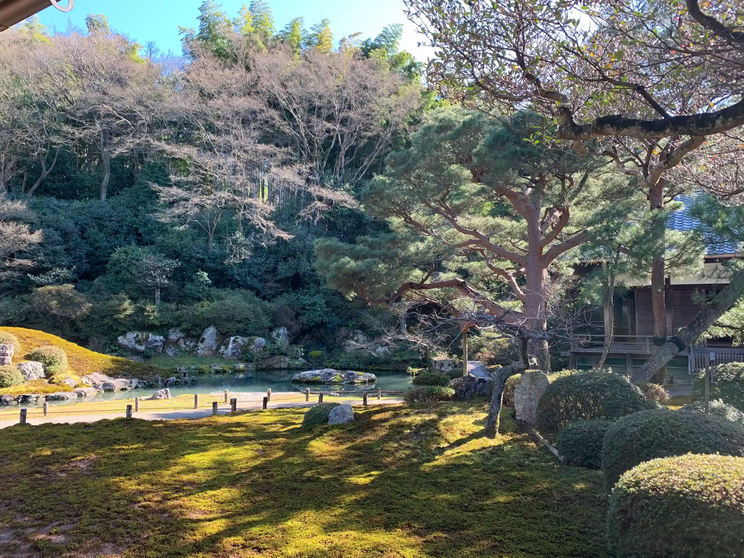 回遊式のお庭なんで色んな角度から楽しめ、夜はまた雰囲気が違うがするんだなって想像できます。寒い日でしたがお日様がいい感じに入ってきてぼーっとしてる人が結構いましたね。是非ぼーっとしに行ってみてください!笑