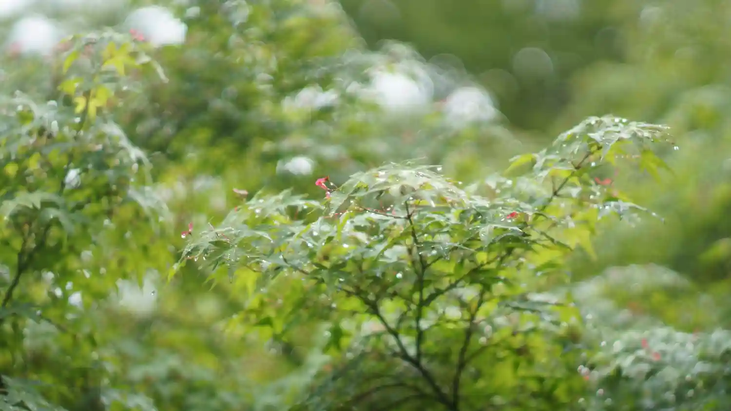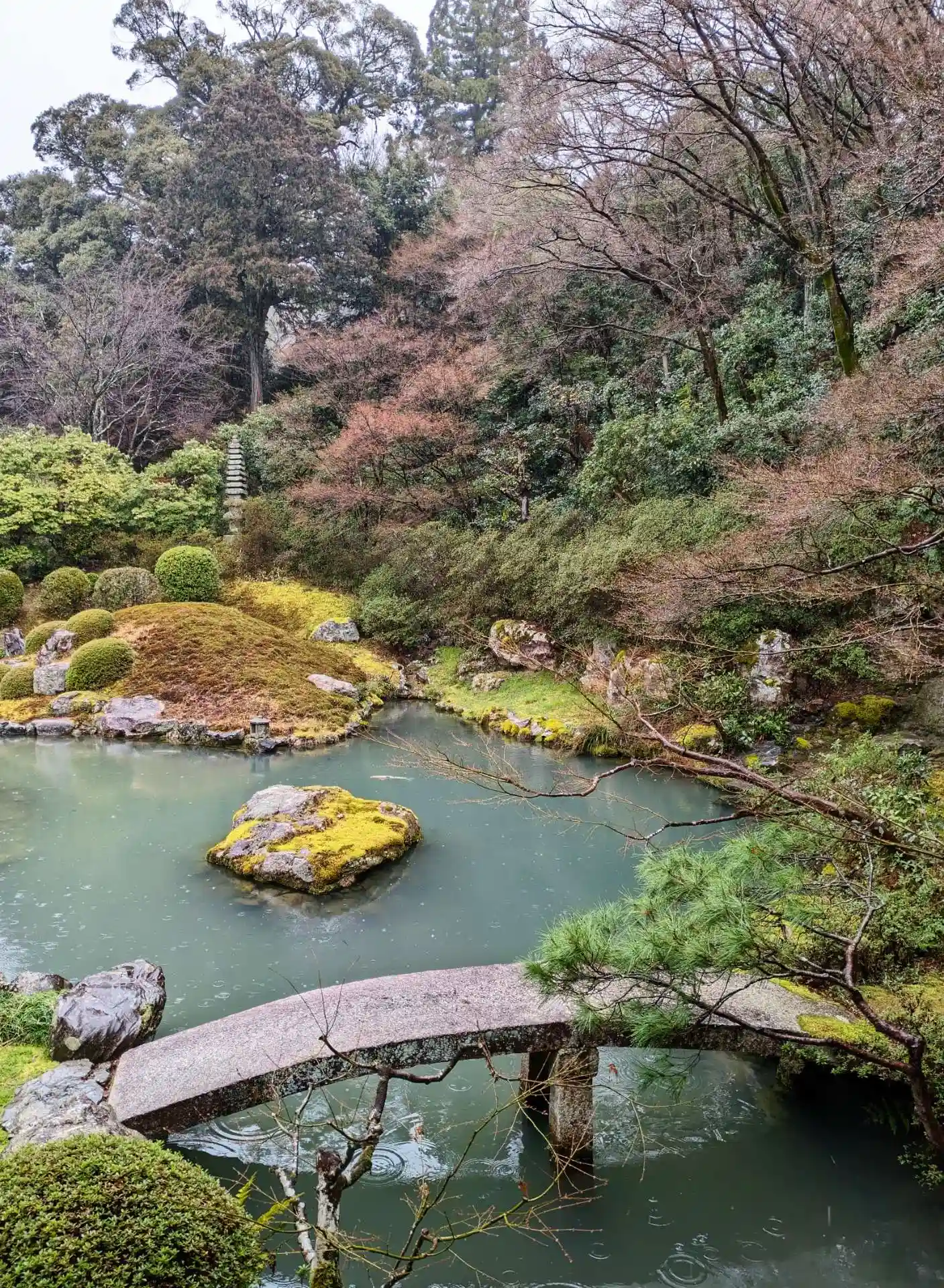 お庭、京都らしい雰囲気で雨の音が情緒を増してく…