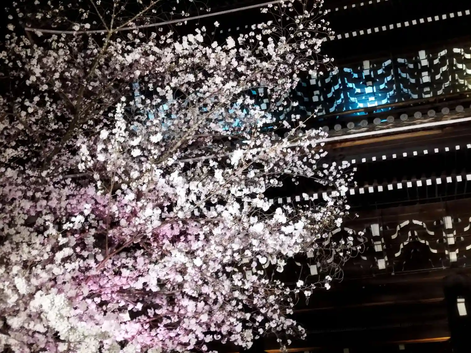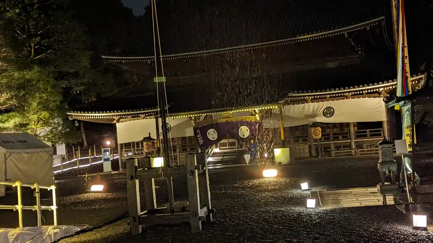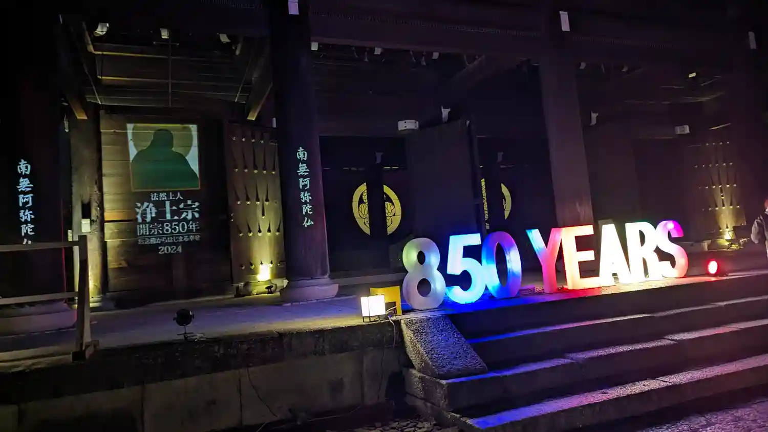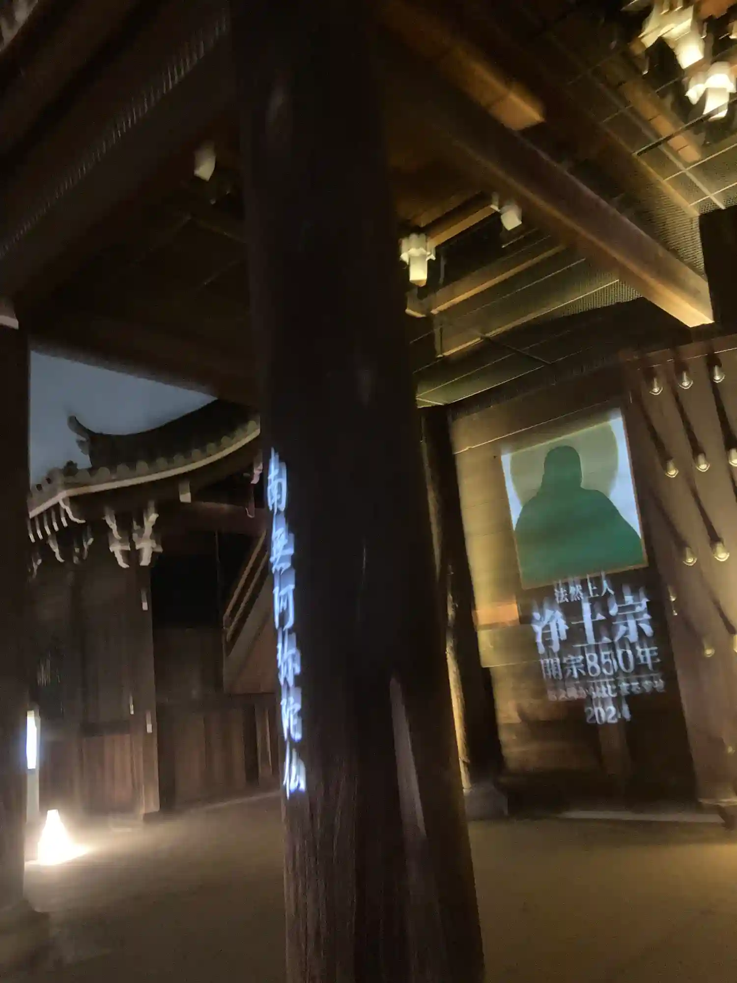 国宝御影堂。ライトアップのスケールが大きすぎて。。。(笑)