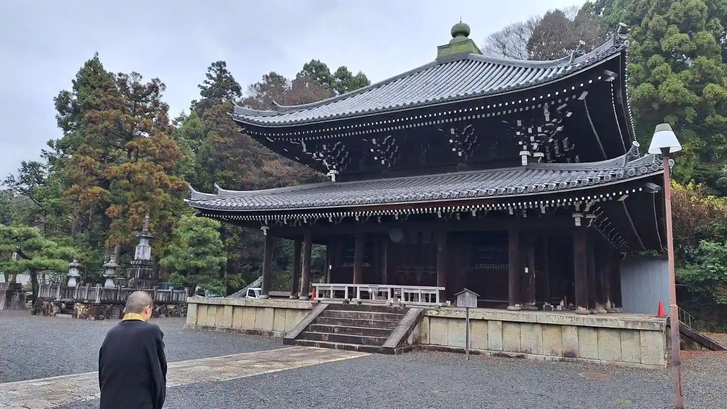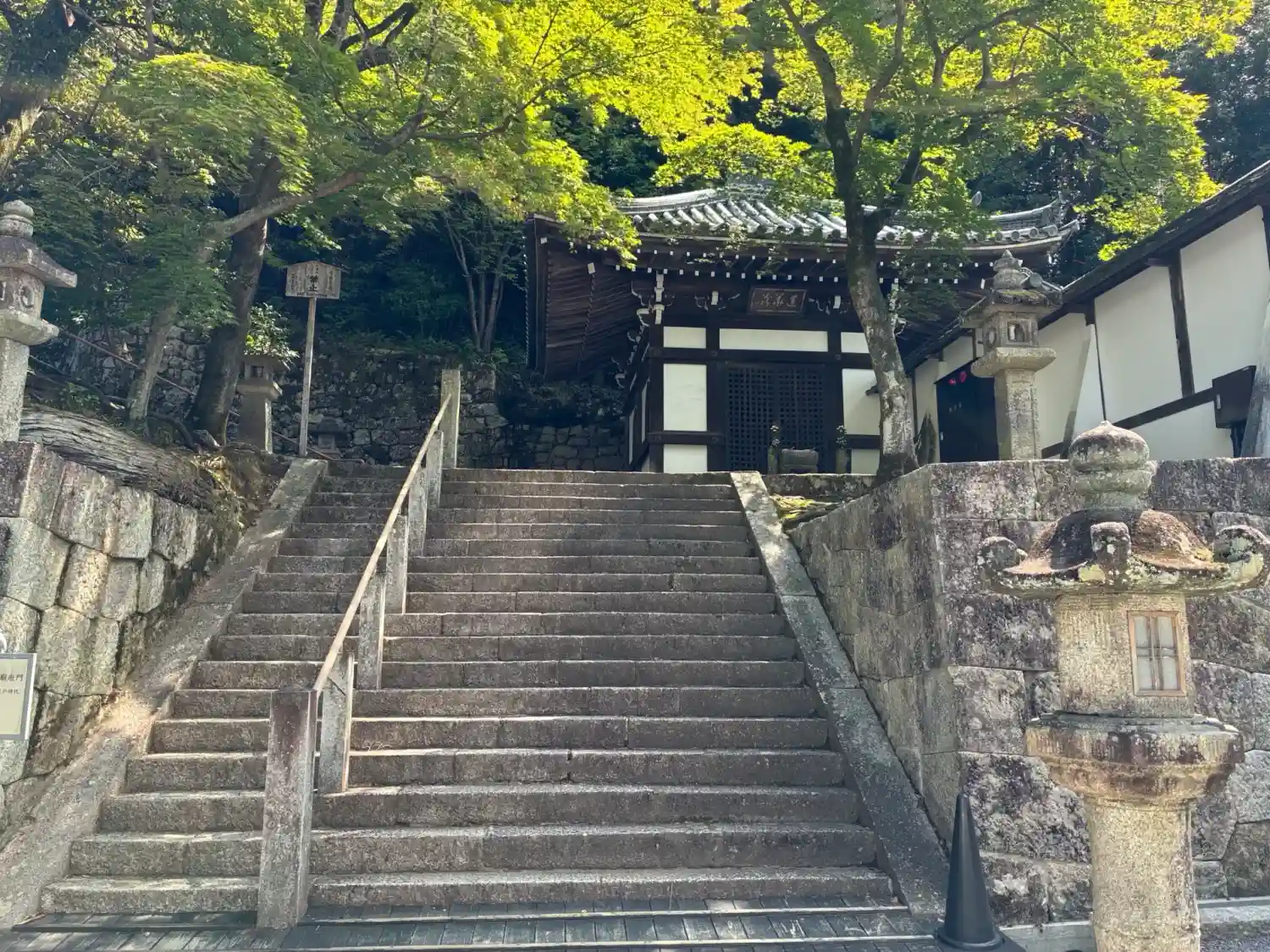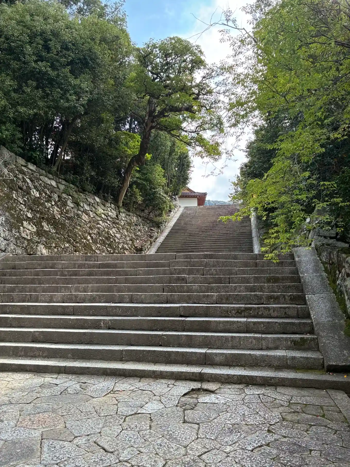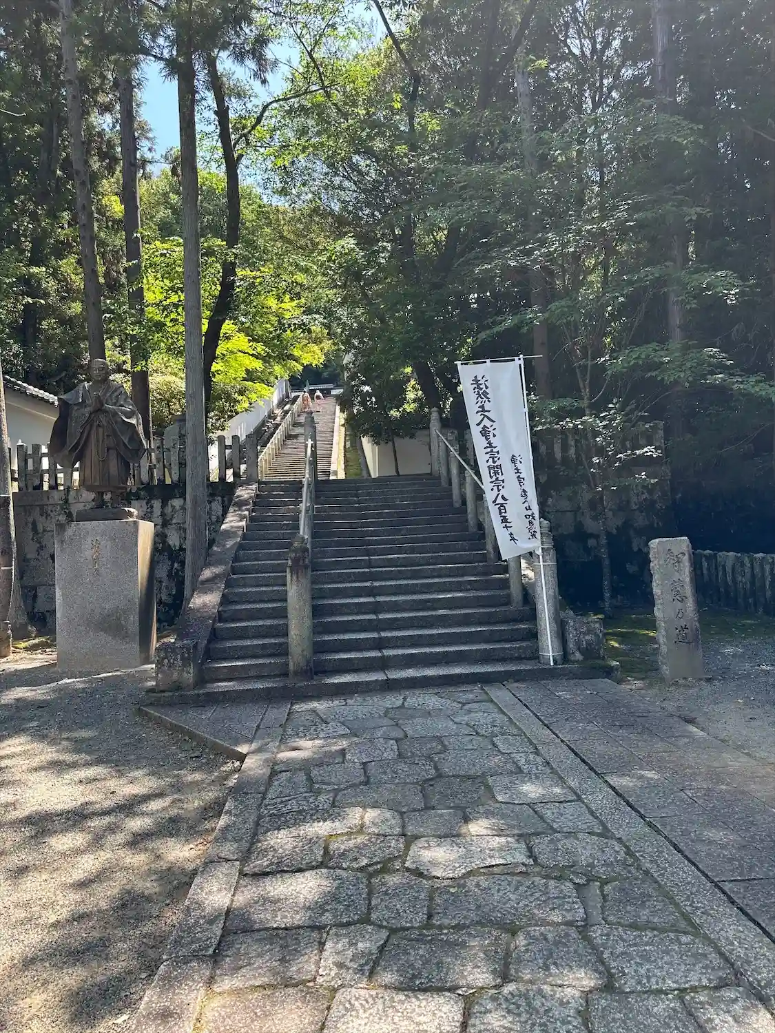 三門から御影堂への石階段は一段ずつが高く、ちょっ…