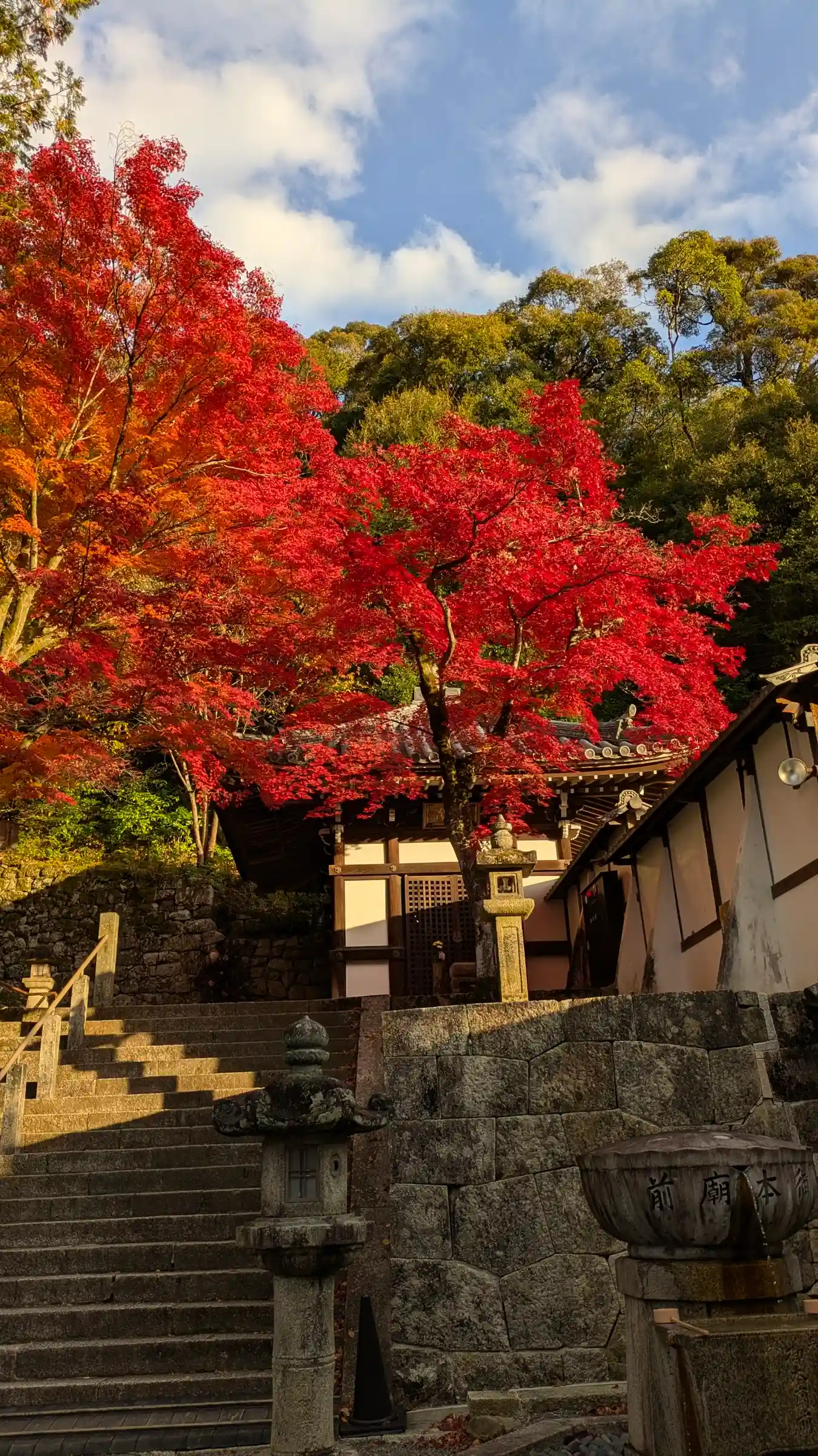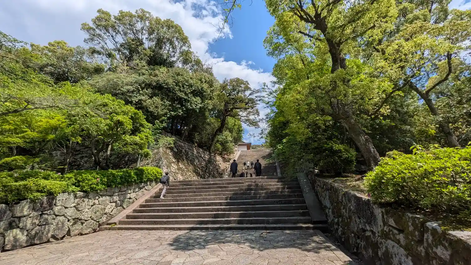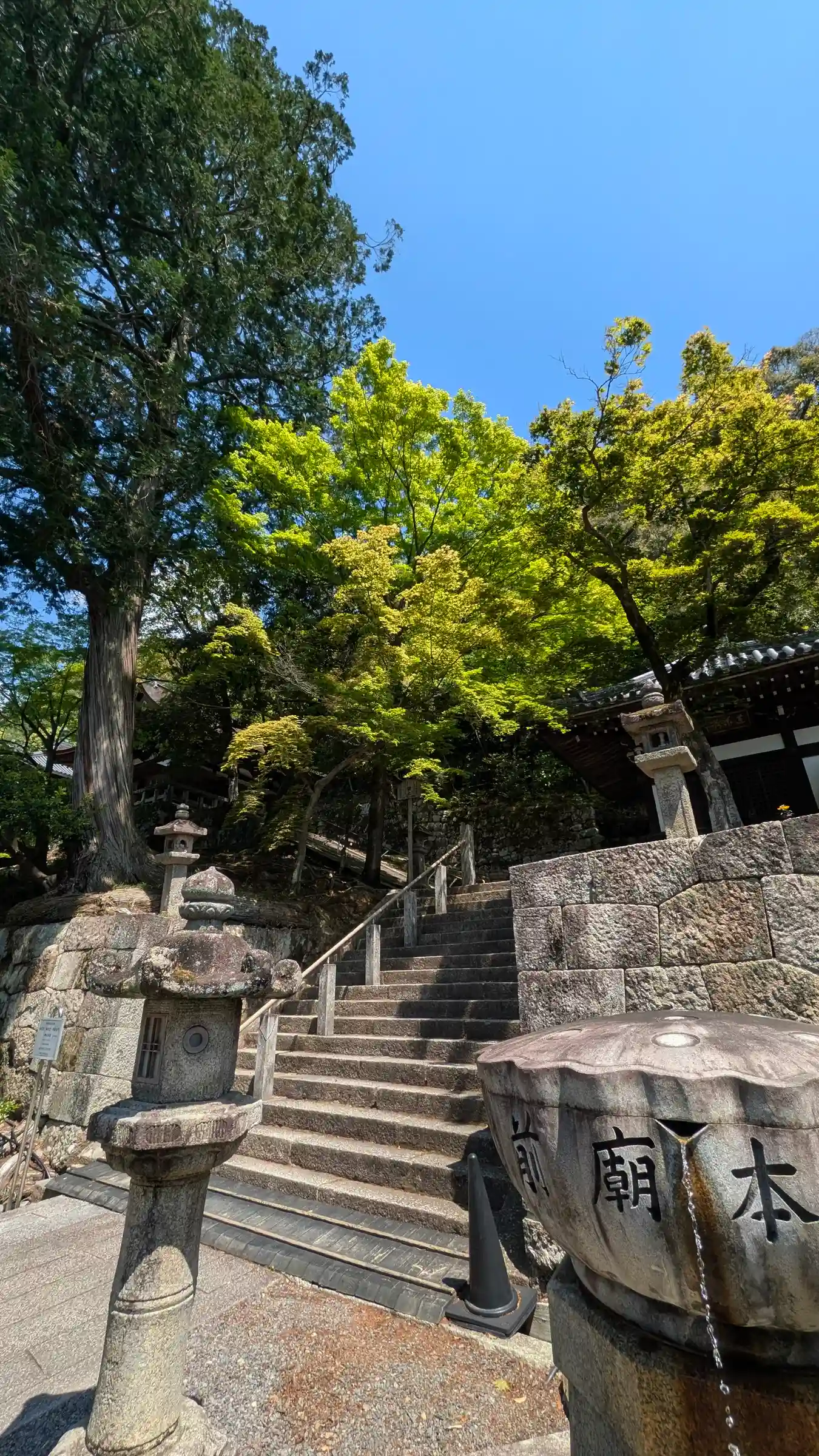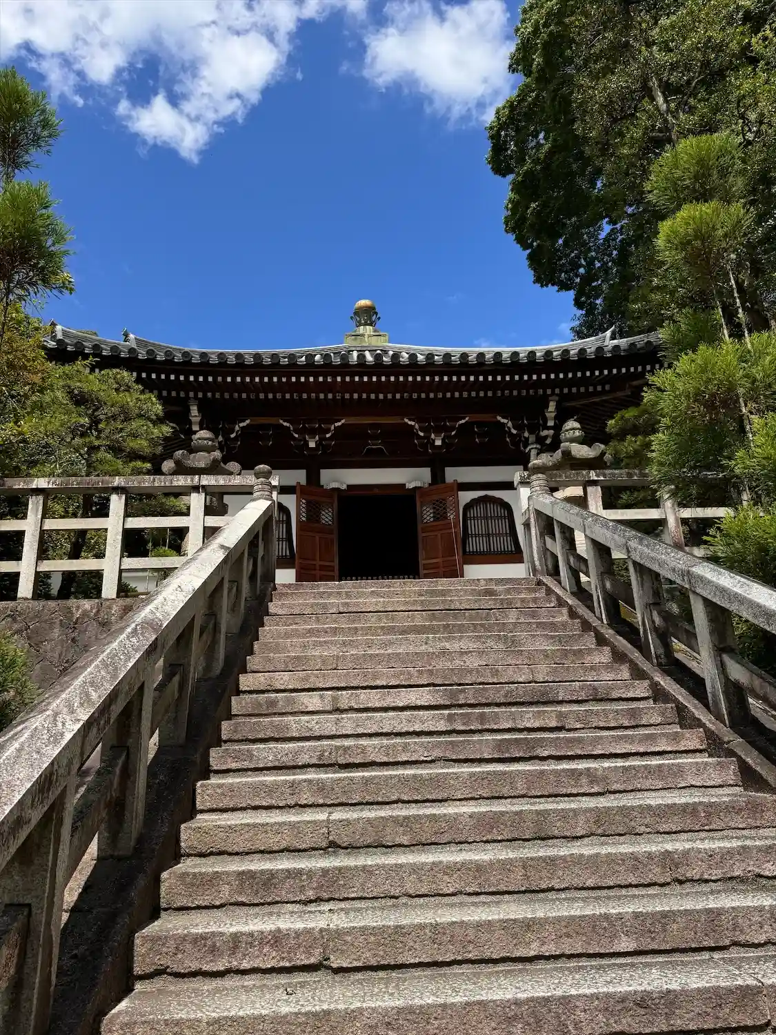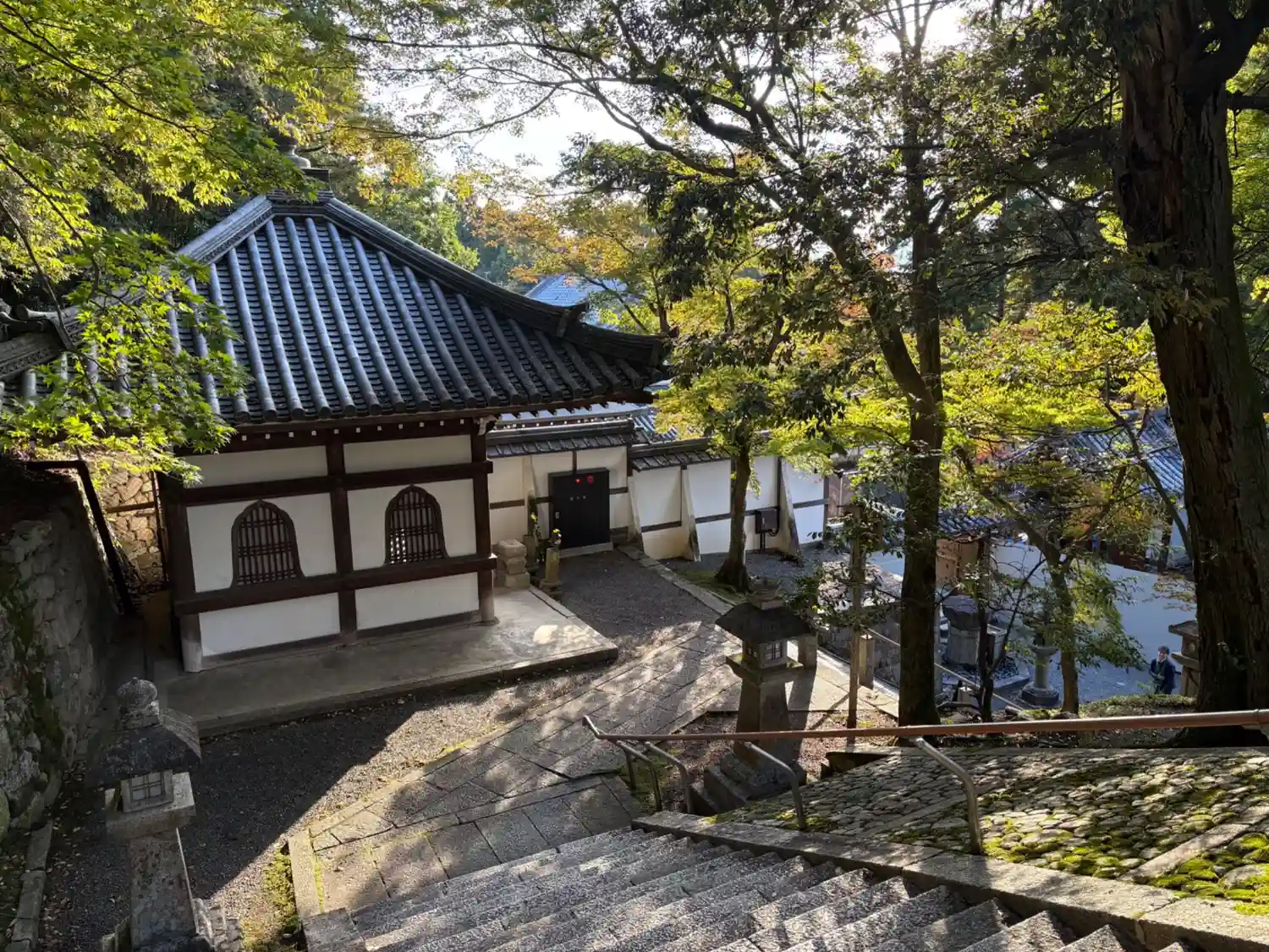 三門から御影堂への石階段は一段ずつが高く、ちょっ…