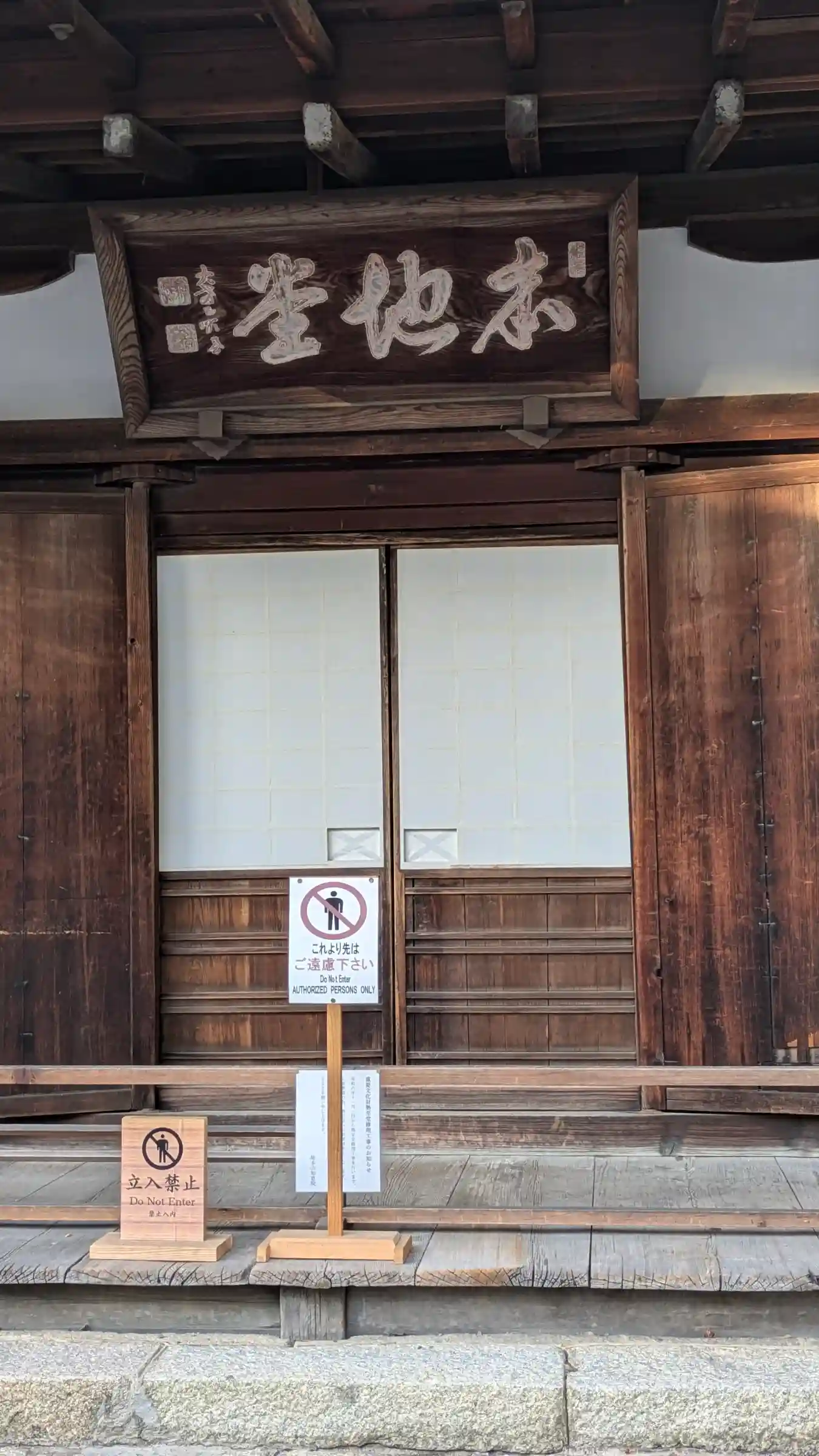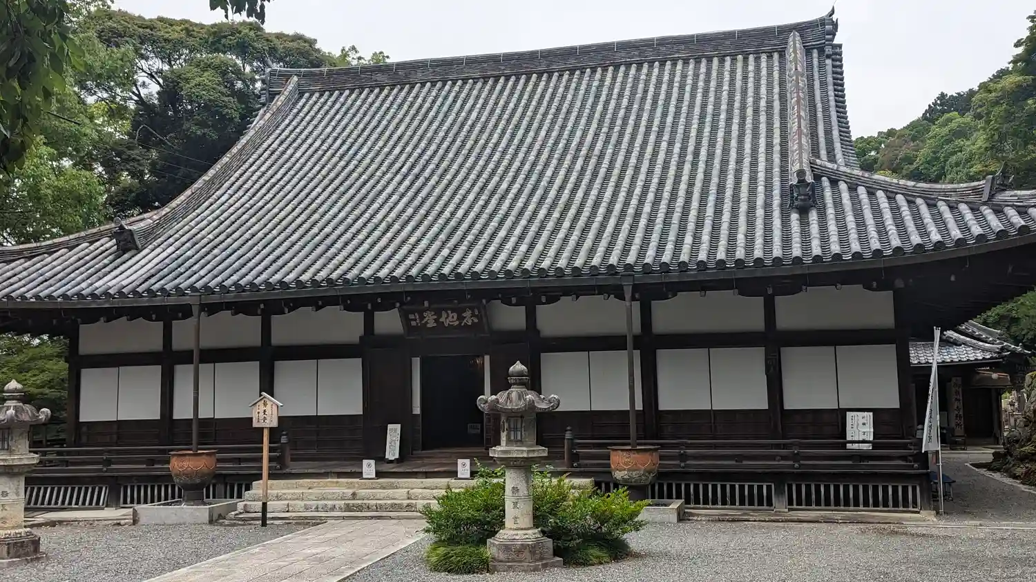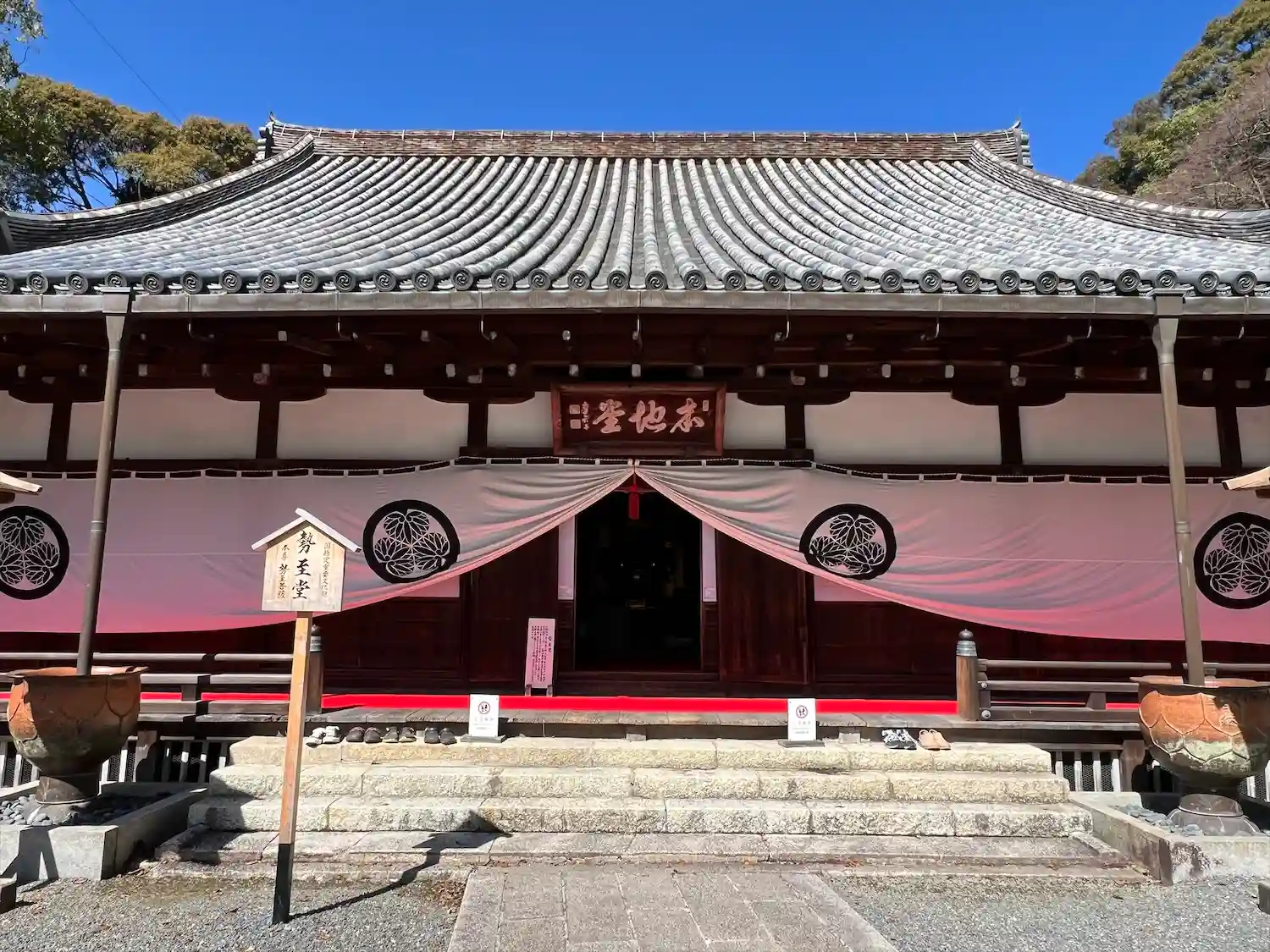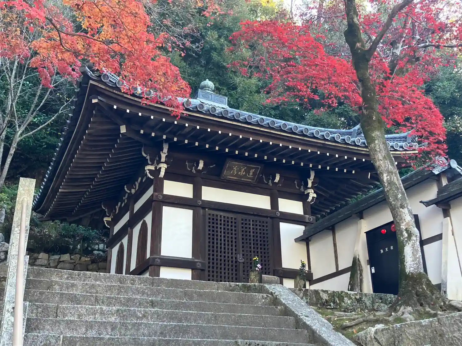 本堂の左側(西方)、霊塔の右隣に建つ<阿弥陀堂>。本尊阿弥陀如来を安置。明治時代の再建。扁額は後奈良天皇の宸筆。