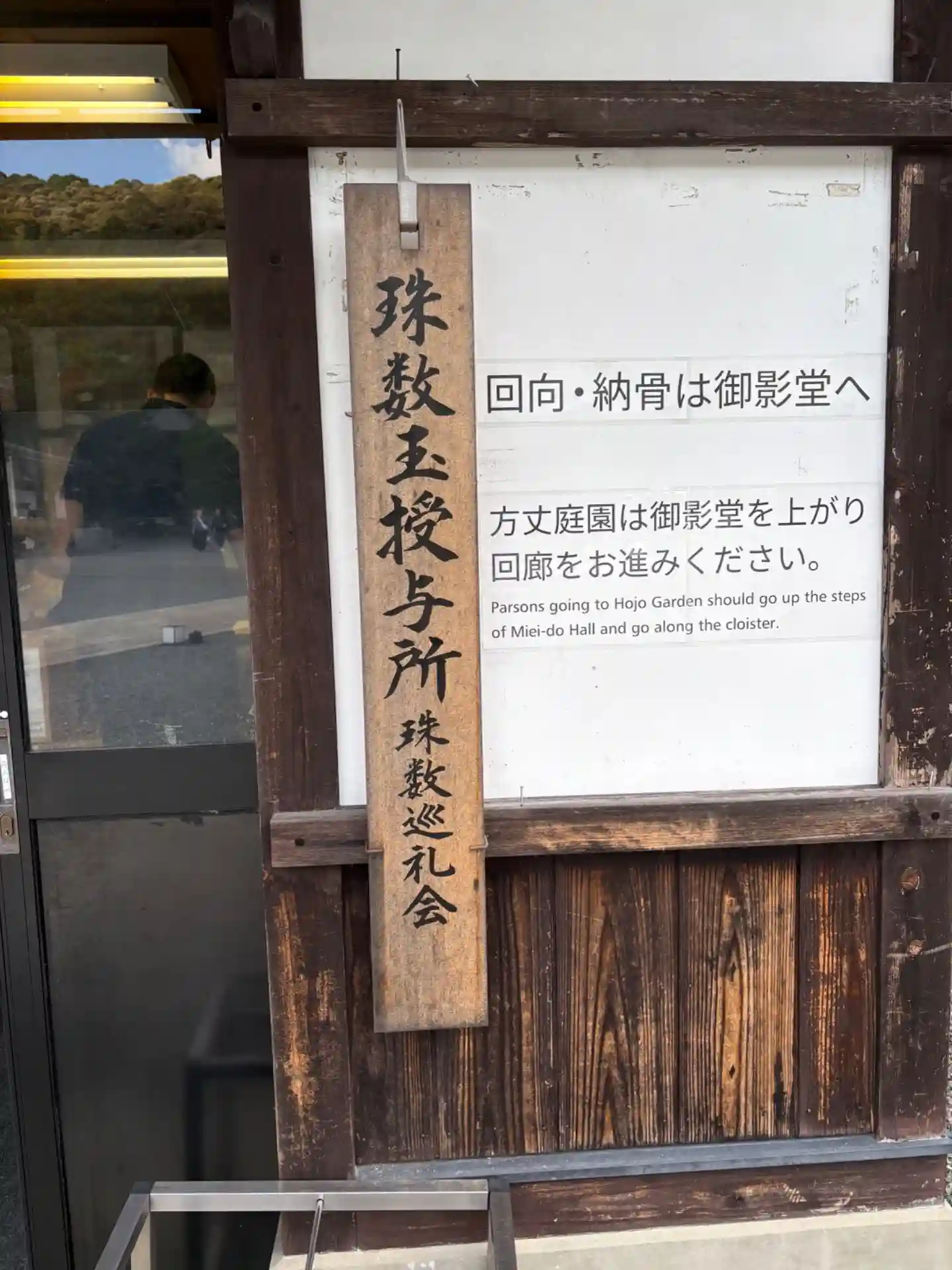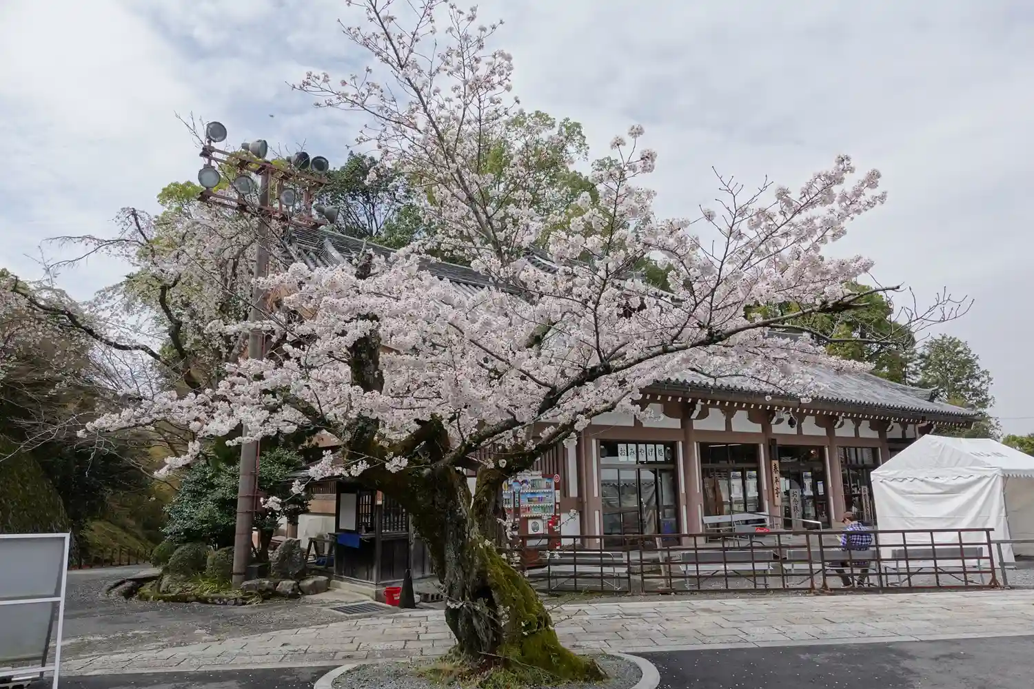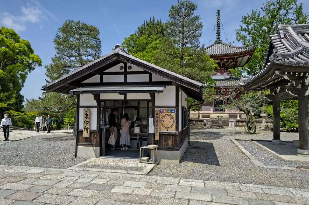 阿弥陀堂から来た方角を振り返る。写真左の建物が<泰平亭>で土産物売場。写真右の小さな建物が<朱印所>。御朱印はこちら。