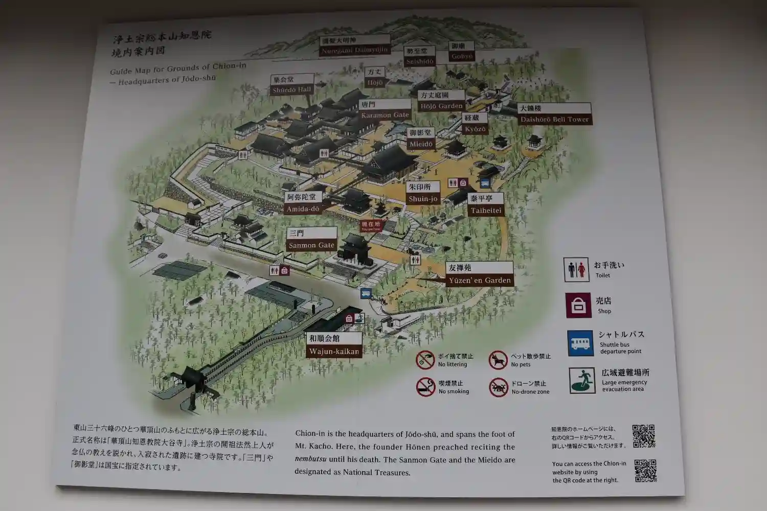 私の尊敬する法然さんの浄土宗の総本山です。徳川家の紋があるのは、徳川の軍事拠点としても機能するよう…
