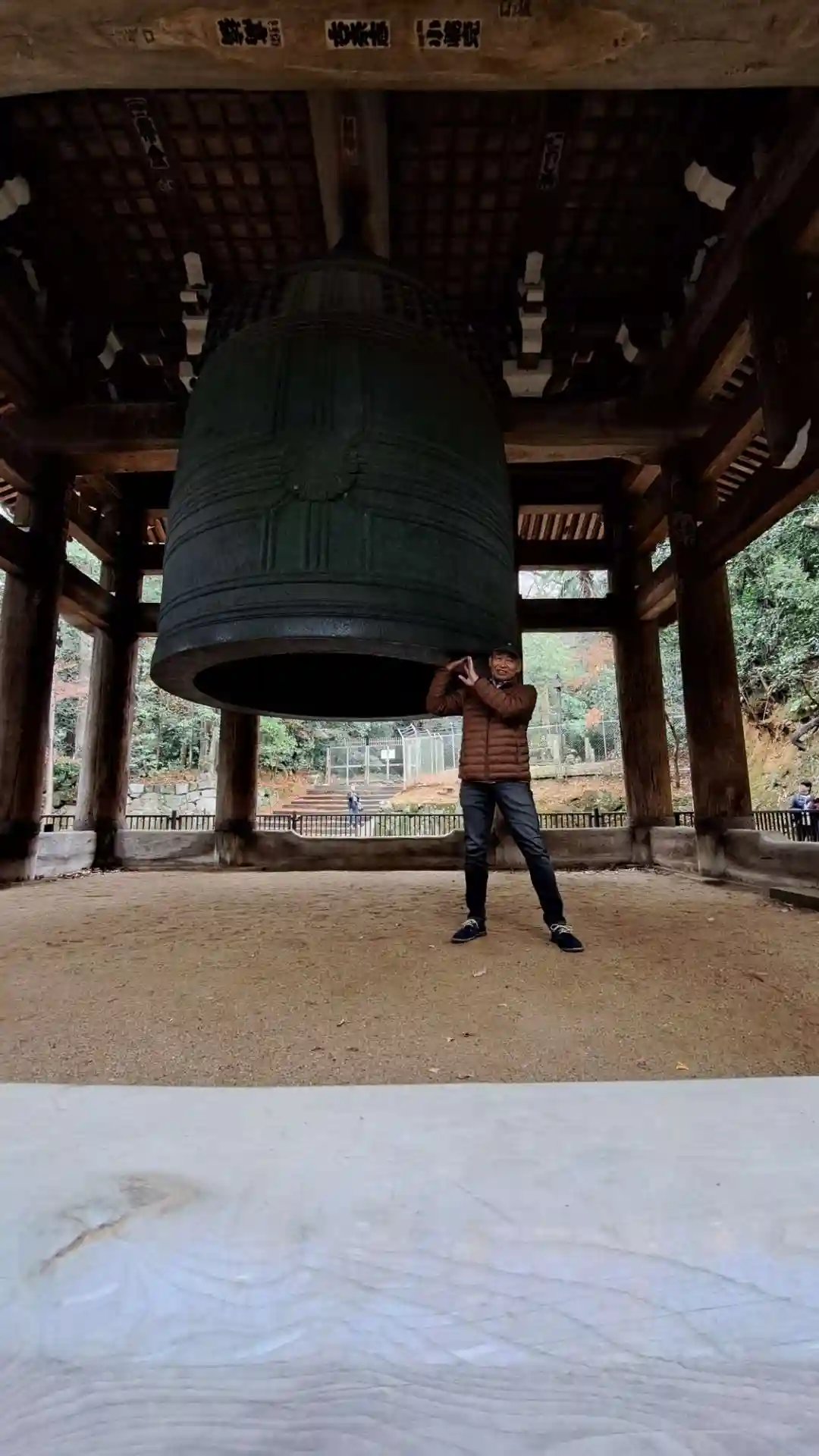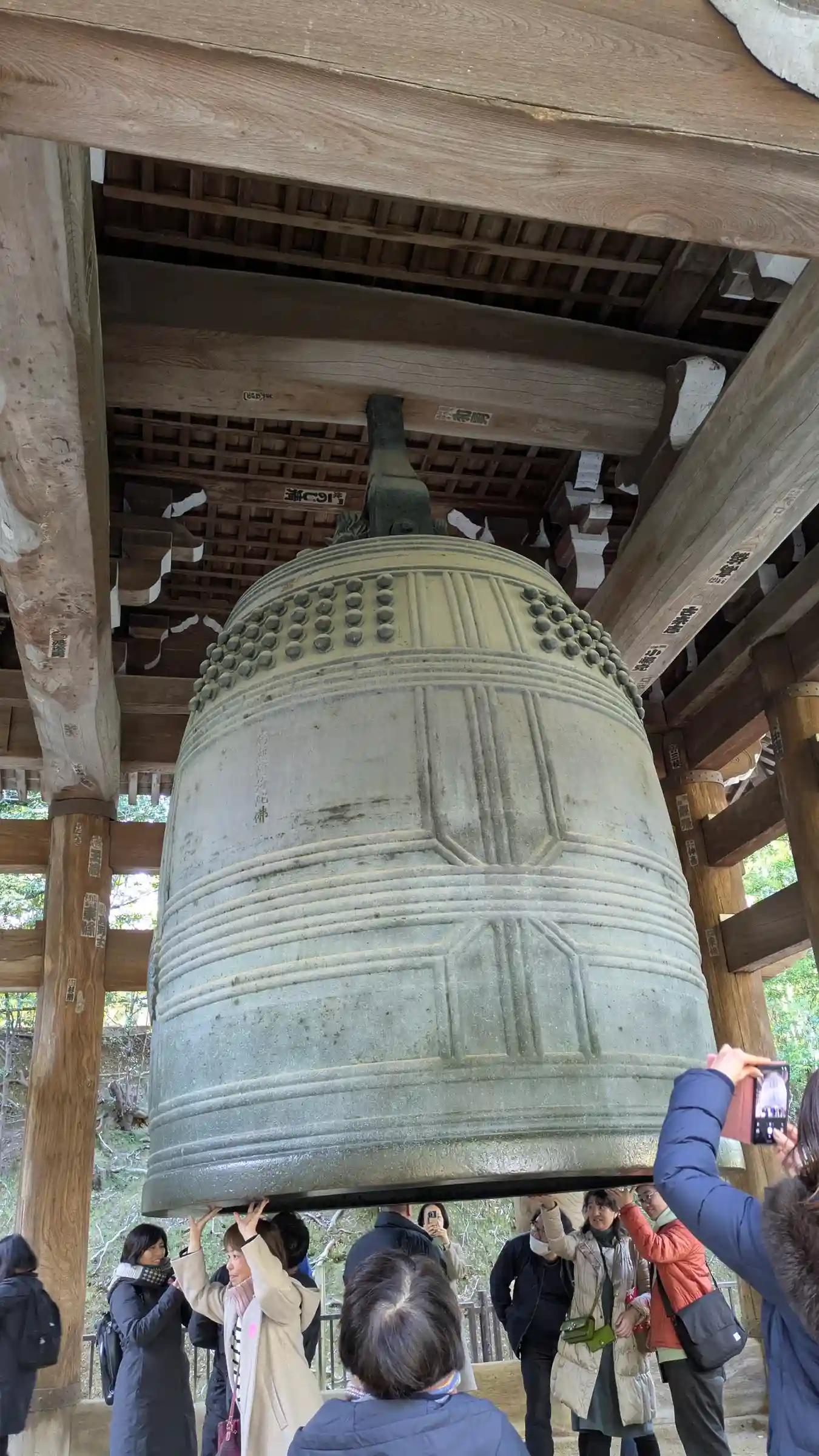 僧侶が7~8人がかりで、この大鐘(重さ70トン)を突くのです。