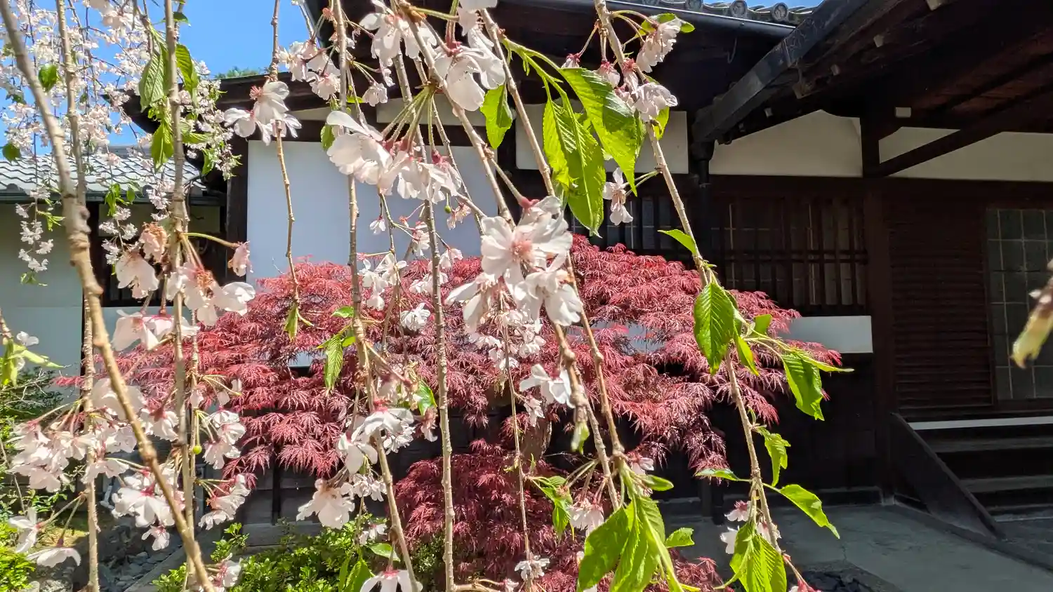 枝垂れ桜がまだきれいに🤗一初との共演でした😊