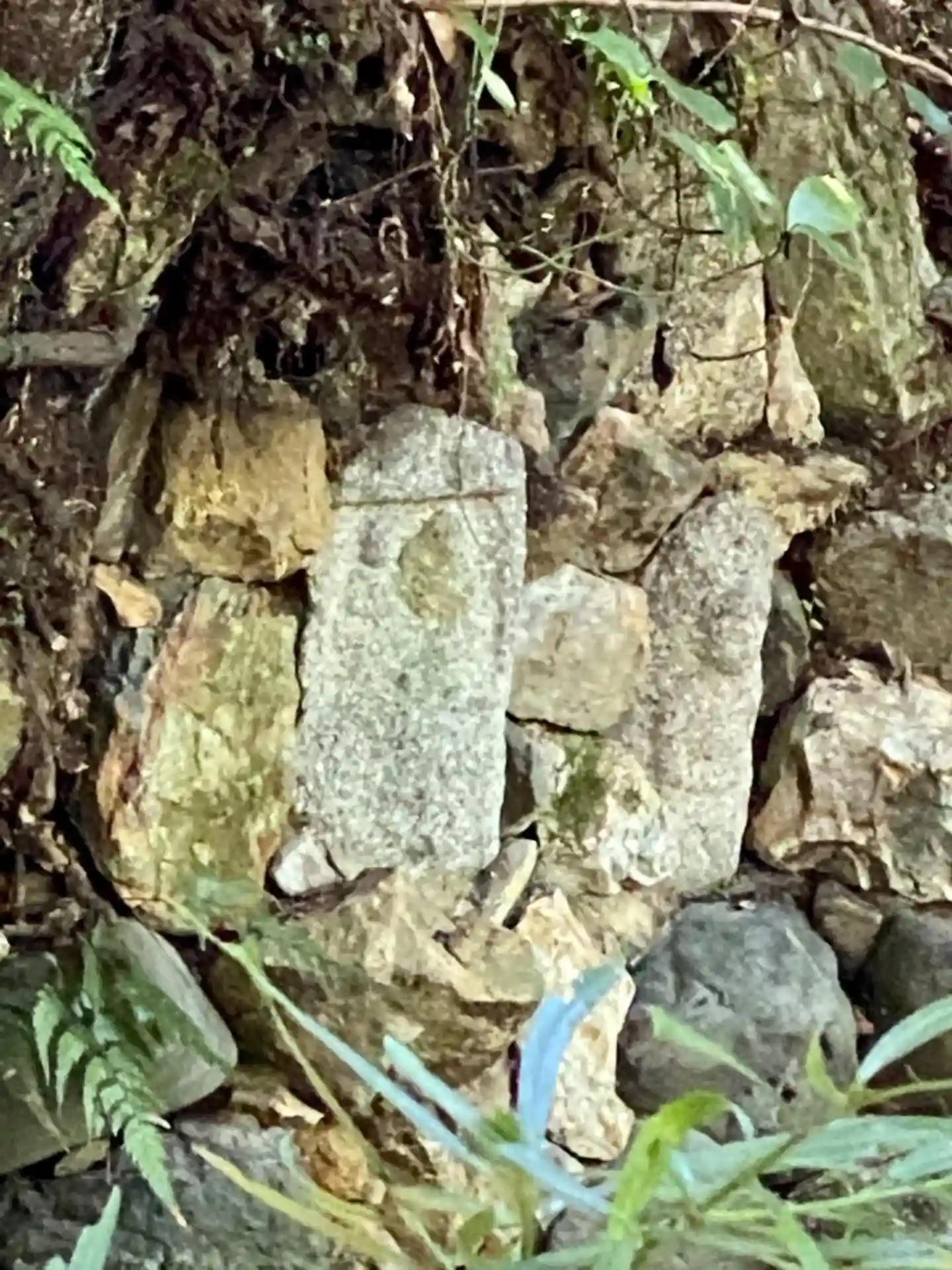 平安の滝の石組みに室町時代から近世までの様々な石仏が組み込まれています。